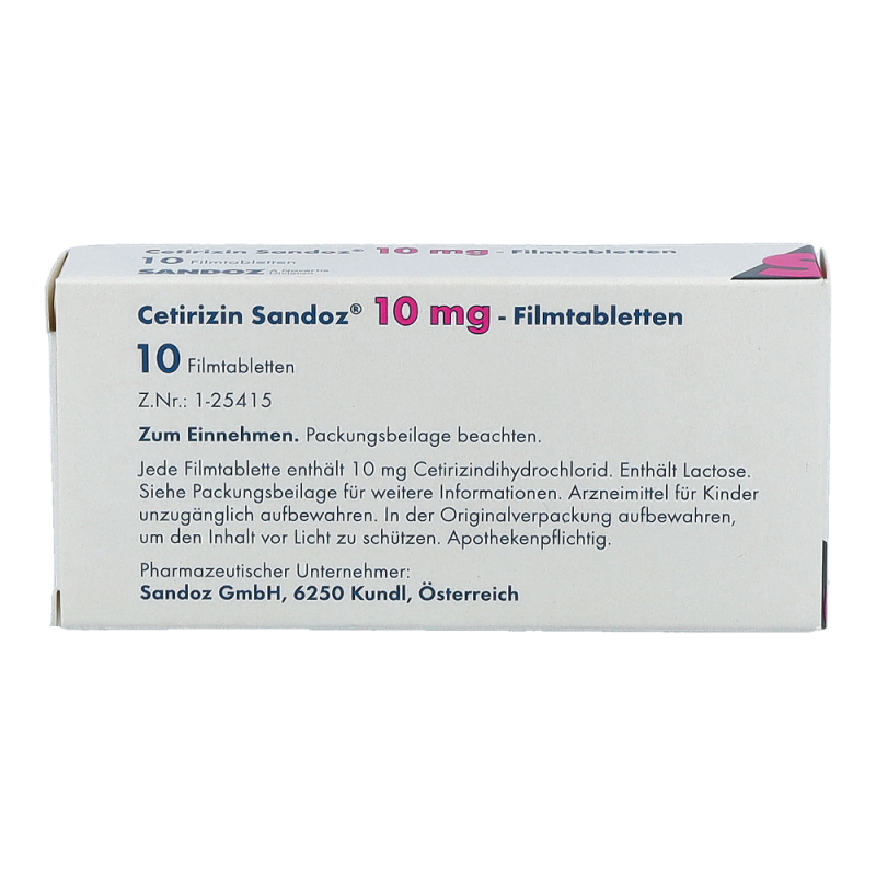 Cetirizin Sandoz 10 mg Filmtabletten ist ein Arzneimittel, das zur Behandlung von Krankheitszeichen (Symptomen) bei allergischen Erkrankungen eingesetzt wird. Cetirizin lindert gezielt Urtikaria/Nesselsucht, Juckreiz, Schwellung der Nasenschleimhaut und tränende Augen, wenn die Symptome durch z.B. Heuschnupfen oder Hausstaubmilben-Allergie ausgelöst werden.