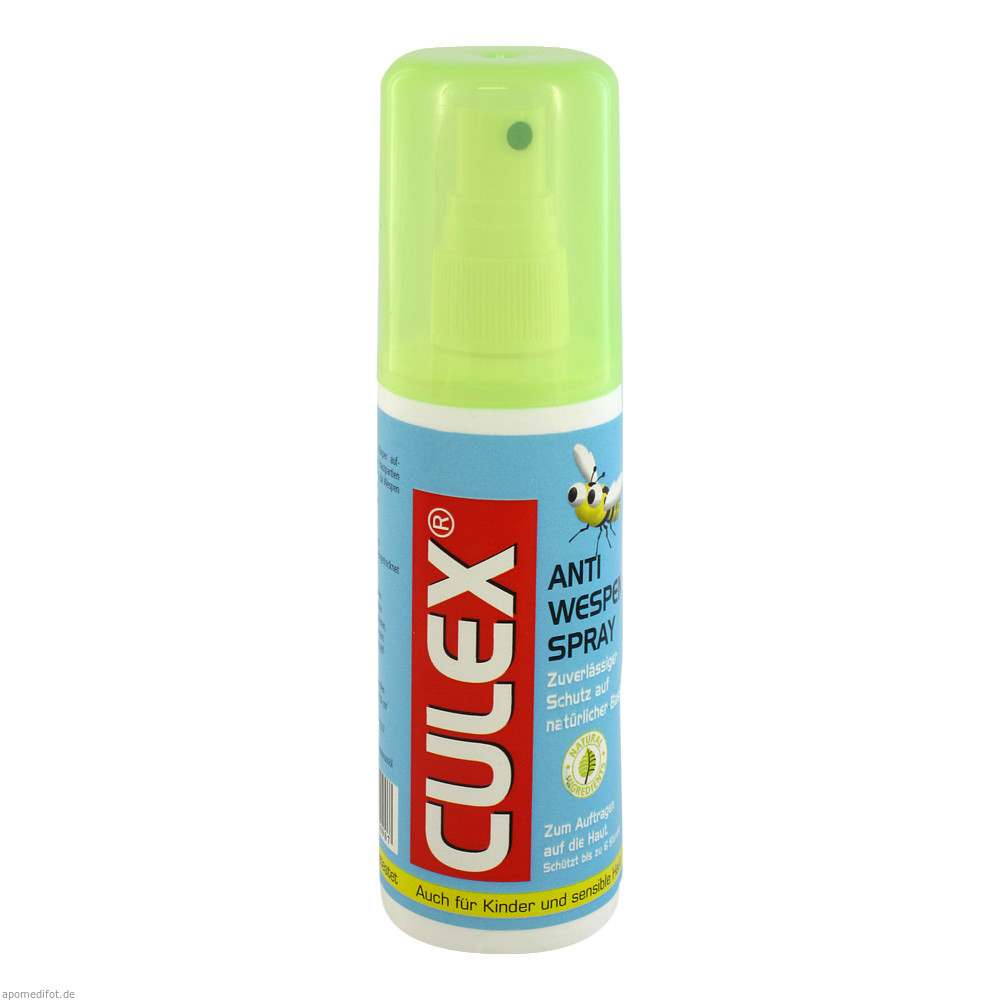 Culex Anti Wespenspray mit Wirkstoffen auf natürlicher Basis dient zum Auftragen auf die Haut. Das Mittel schützt zuverlässig bis zu 6 Stunden und ist auch für Kinder bestens geeignet.