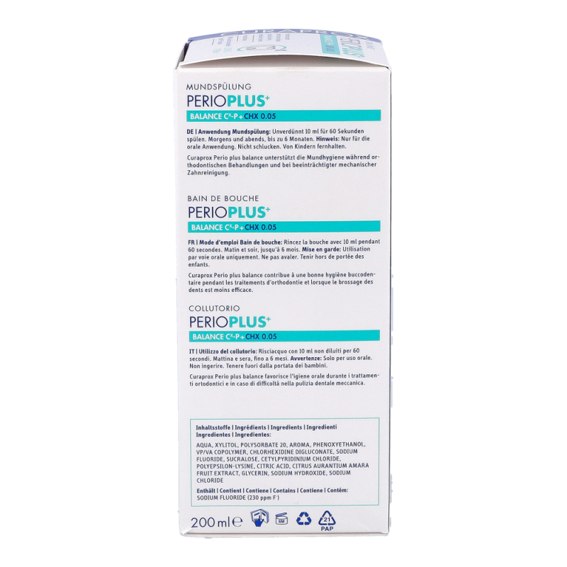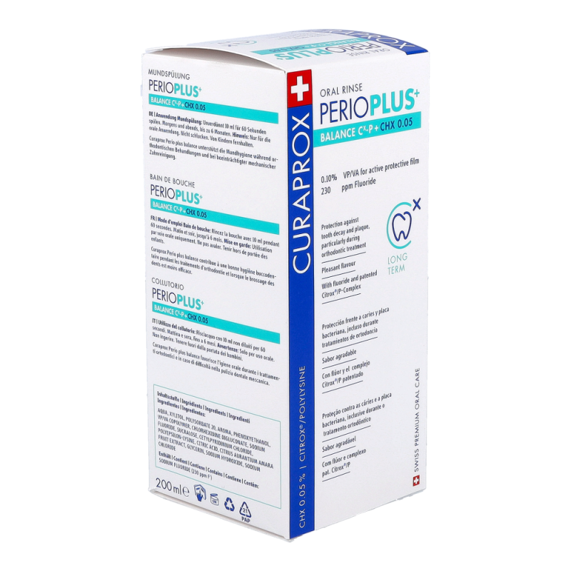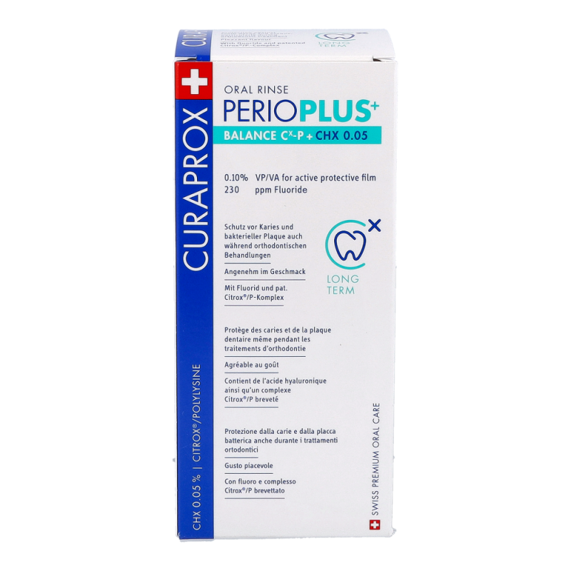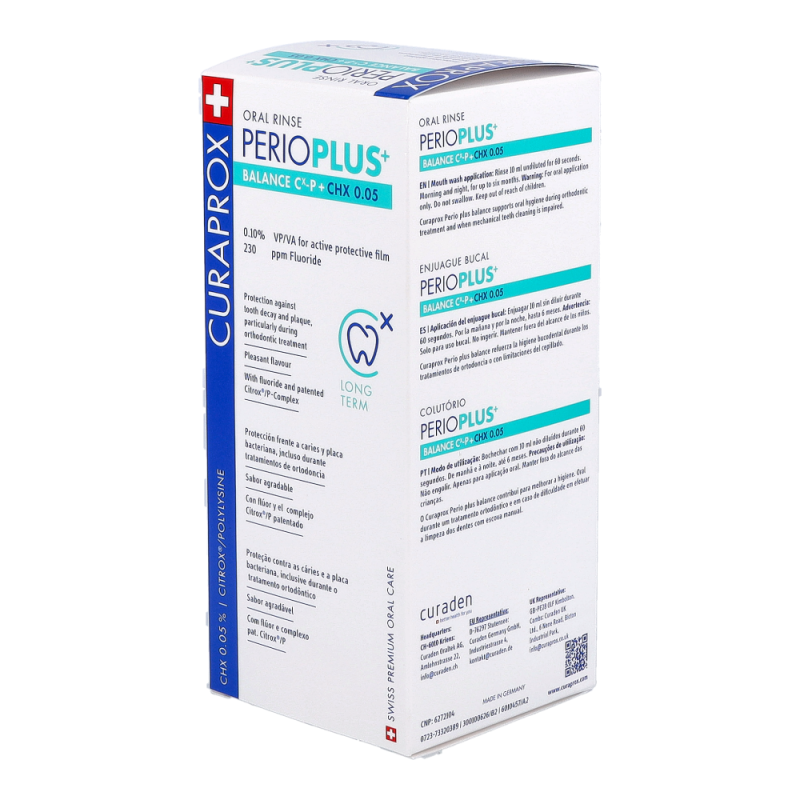 Curaprox Perio Plus+ Balance reduziert Karies- und Gingivitis-Risiko für Träger orthodontischer Geräte – bei therapiebedingter Mundtrockenheit oder motorischen Einschränkungen zur Langzeitanwendung.
