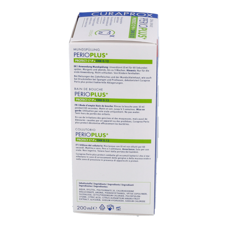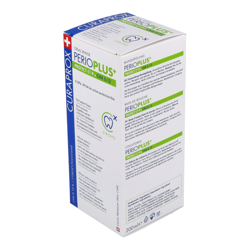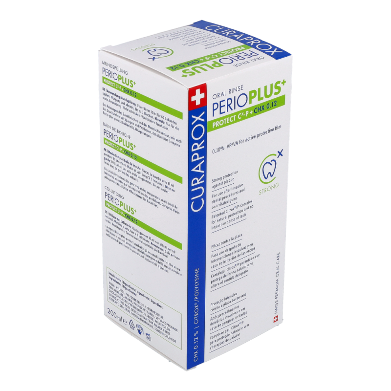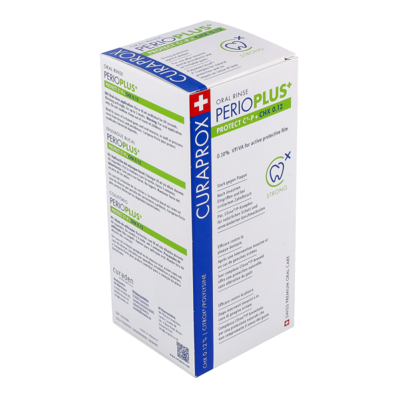 Curaprox Perio Plus+ Protect mit 0.12% Chlorhexidin-Konzentration ist die ideale Mundspülung zur antibakteriellen Unterstützung im Falle von Gingivitis, Parodontitis oder anderen oralen Erkrankungen.