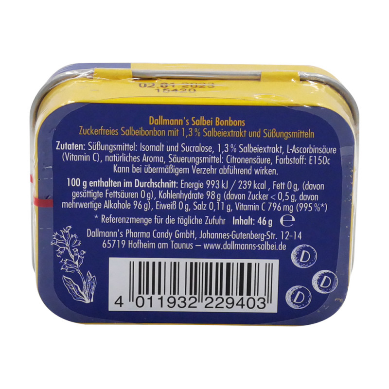 Dallmann´s Ingwer-Salbei Bonbons ohne Zucker – Die Kombination aus würzigem Ingwer, säuerlich erfrischendem Salbei und Zitrone verspricht ein wohltuendes Geschmackserlebnis.