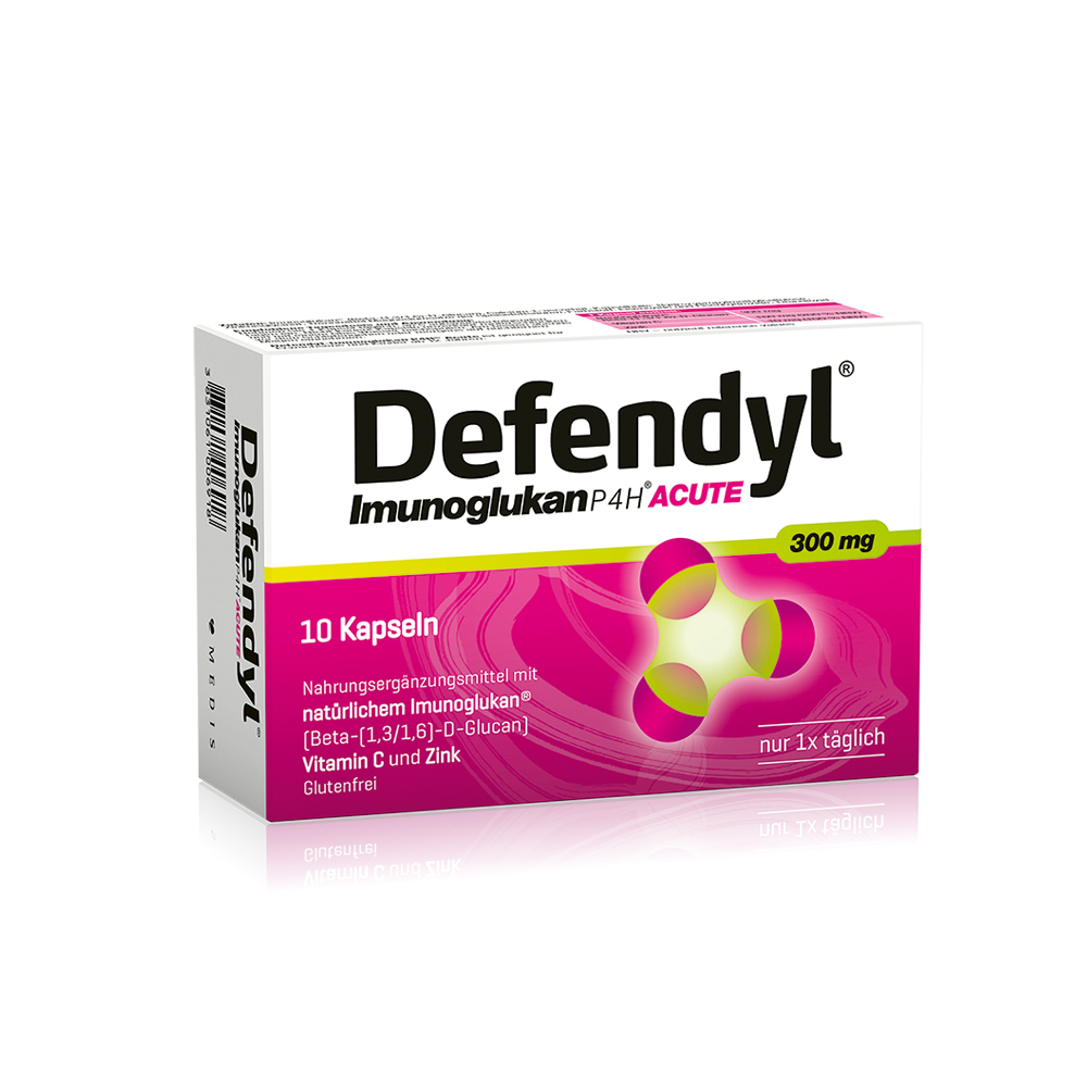 Defendyl® ACUTE ist ein Nahrungsergänzungsmittel in Form von Kapseln mit Imunoglukan (300 mg), Vitamin C und Zink, die zur normalen Funktion des Immunsystems beitragen – dauerhaft mit hohem Rabatt bestellen!