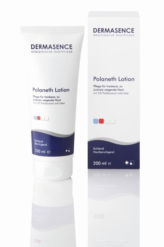 Dermasence Polaneth Lotion 200 ml wurde speziell für die Haut im Alter konzipiert, die häufig zu extremer Trockenheit, Hautschuppen und Juckreiz neigt. Sie vermindert die Wahrnehmung und das Missempfinden von Juckreiz. Feuchtigkeitsregulierende Eigenschaften und hochwertige pflanzliche Öle schützen vor dem Austrocknen. Die schnell einziehende Lotion kann auch nach Sonnenbädern bei Spannen der Haut und Juckreiz eingesetzt werden