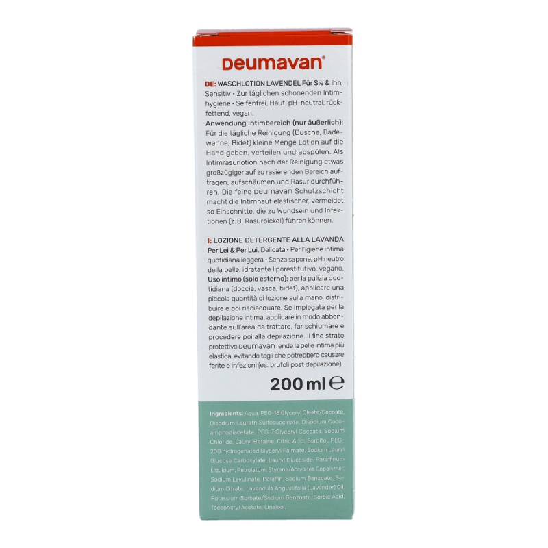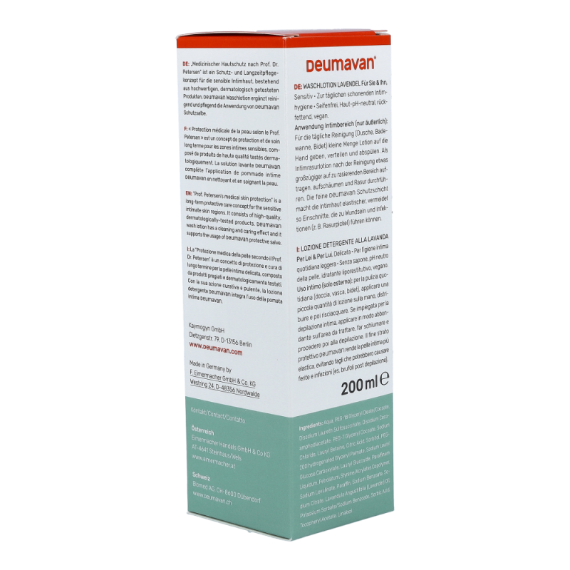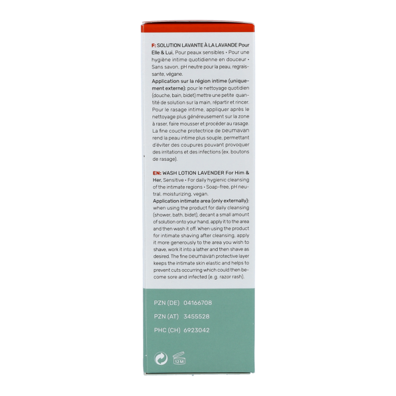 Deumavan Waschlotion reinigt die empfindliche Haut im Intimbereich schonend und nachhaltig. Bei allgemein anspruchsvoller Haut kann sie auch zur Reinigung des ganzen Körper eingesetzt werden.