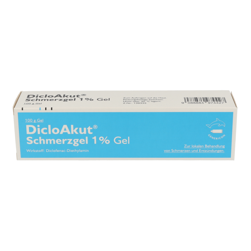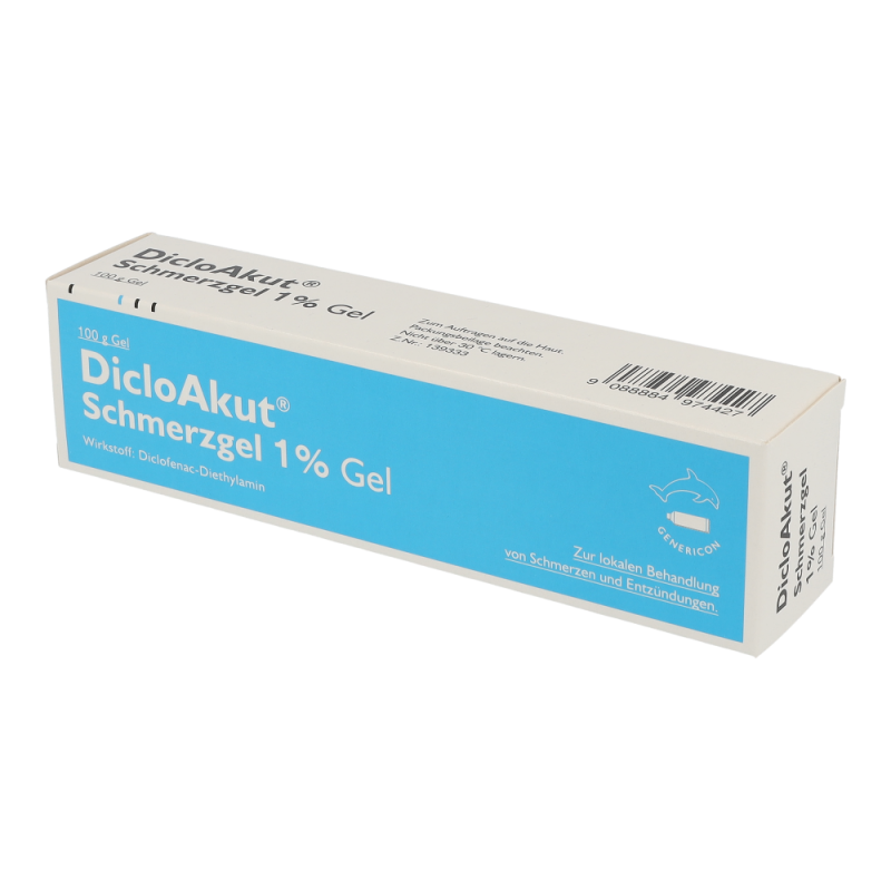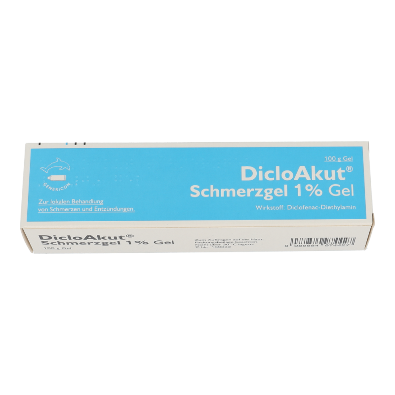 Das DicloAkut gehört zur Gruppe der sogenannten nichtsteroidalen Antirheumatika (NSAR), die zur Behandlung von Schmerz und Entzündung eingesetzt werden. DicloAkut ist ausschließlich zur äußerlichen Anwendung bestimmt. Die weiße, cremeartige Zubereitung zieht rasch in die Haut ein, ohne zu fetten, und kühlt. Der im Gel enthaltene Wirkstoff Diclofenac wirkt entzündungshemmend, schmerzlindernd und führt zu einer Abnahme entzündlicher Schwellungen und zu einer Linderung von Druck- und Bewegungsschmerzen.
