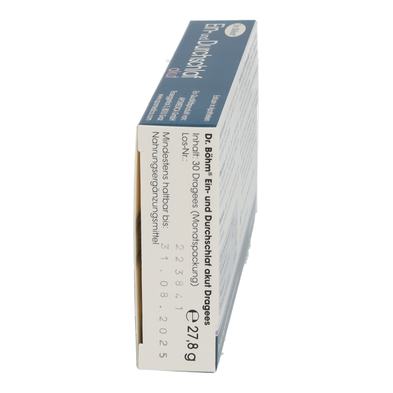 Dr. Böhm® Ein- und Durchschlaf akut bietet Ihnen wertvolle Unterstützung bei akuten Schlafproblemen. Melatonin verkürzt die Einschlafzeit, Xanthohumol beruhigt und entspannt und Baldrian unterstützt das Durchschlafen.