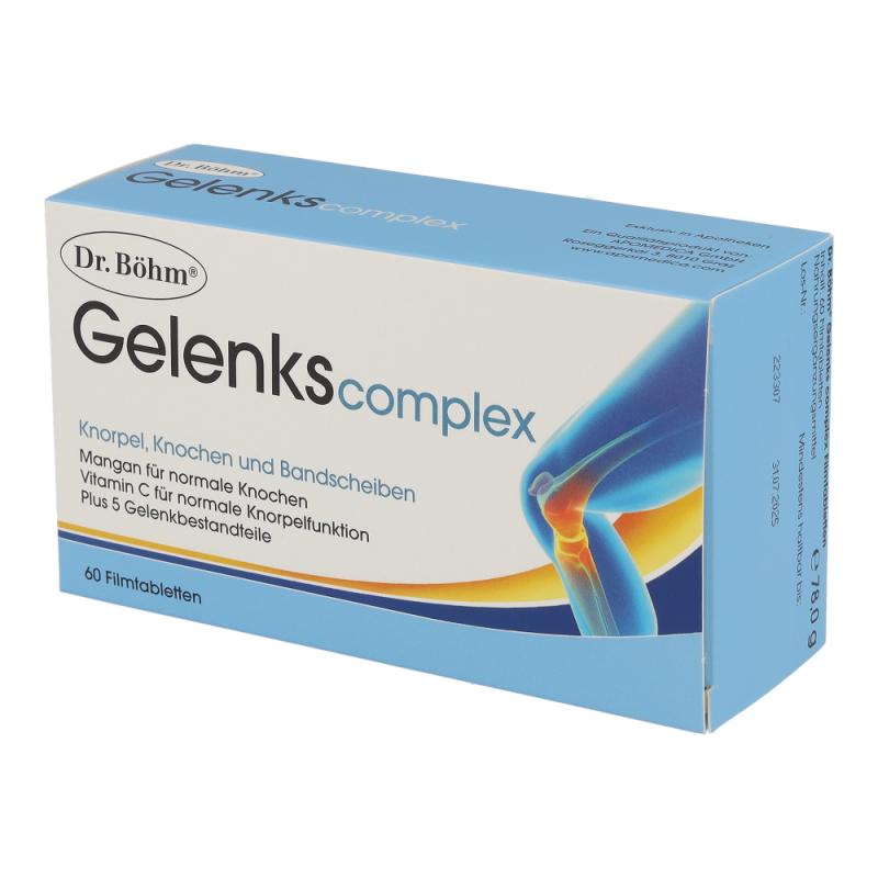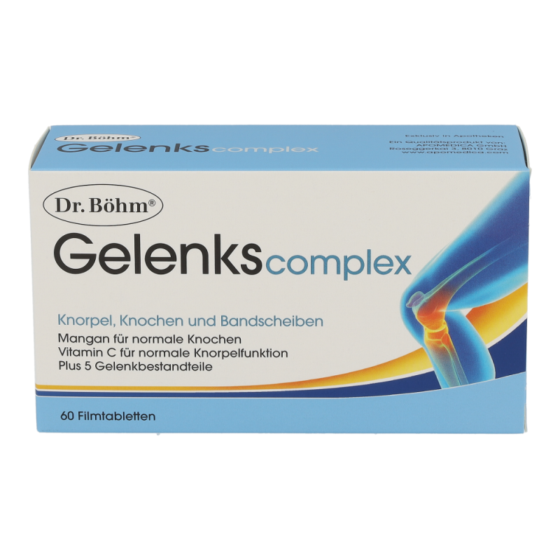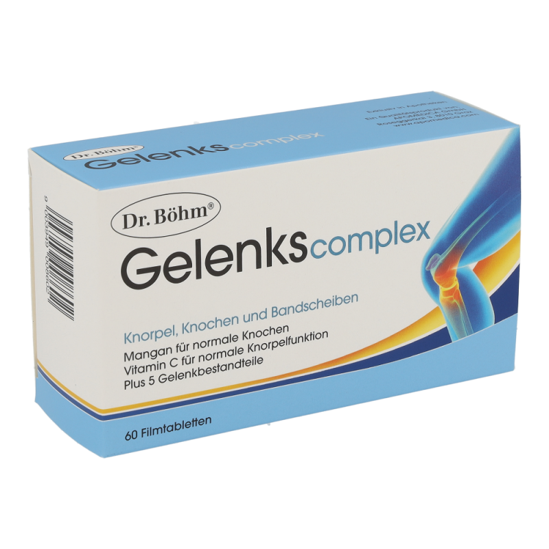Mit Dr. Böhm® Gelenks complex können Sie Knochen, Knorpel, Bänder und Bandscheiben mit gelenkspezifischen Vitaminen, Mikro- und Gelenknährstoffen unterstützen.