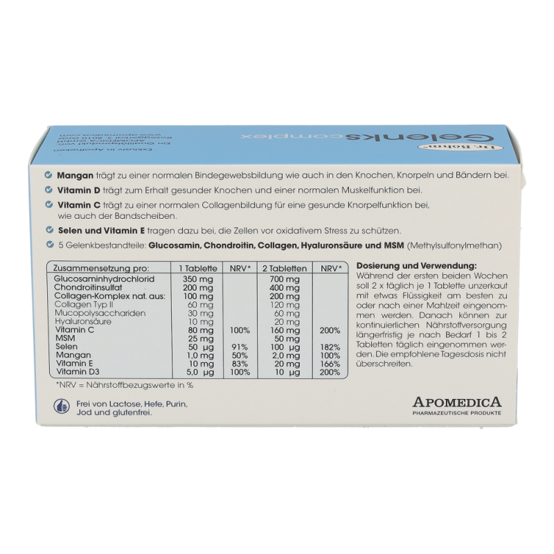 Eine innovative Kombination aus Vitaminen und Mikronährstoffen, zusätzlich mit den fünf wichtigsten Gelenk- und Knorpelbestandteilen als Gelenknahrung.