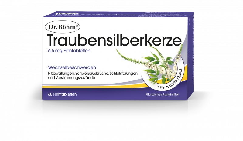 Dr. Böhm Traubensilberkerze Filmtabletten bieten natürliche Hilfe bei hormonellen Beschwerden im Klimakterium, wie Hitzewallungen und Schweißausbrüche.