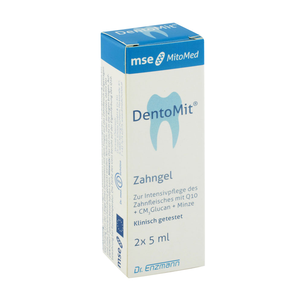 Dr. Enzmann Dentomit Zahngel 2 x 5 ml enthält bioenergetisch aktives Ubiquinon Q10 mit einer einzigartigen Formel aus ultrakleinen Flüssigpartikeln, in ultrakleinen Tropfen verkapseltes Minzöl und CM3Glucan. Die Kombination pflegt das Zahnfleisch intensiv und nachhaltig bis in sonst unzugängliche Bereiche.