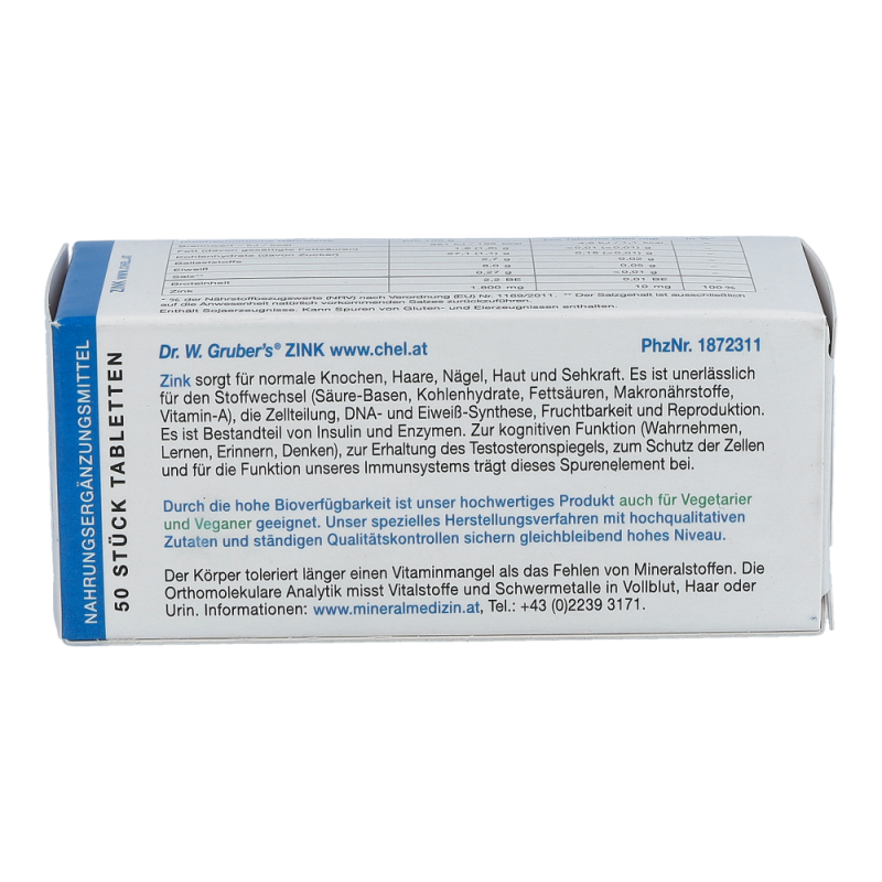 Dr. W. Gruber’s Zink-Kombination-Chelat Tabletten versorgen Ihren Körper mit Zink, Selen und Mangan. Alle zusammen spielen eine wichtige Rolle für die einwandfreie Funktion des Immunsystems. Zink ist zudem wichtig für sämtliche Stoffwechselvorgänge, darunter der Stoffwechsel von Fettsäuren, Säuren, Basen, Kohlenhydraten, Makronährstoffen und Vitamin A. Es unterstützt die Fruchtbarkeit, die kognitive Funktion, sowie die Erhaltung von gesunder Haut, Haaren und Nägeln. Mangan unterstützt den Energiestoffwechsel und vertreibt dadurch die Müdigkeit. Außerdem ist es wichtig für die Bildung von Bindegewebe und für starke Knochen. Selen und Mangan schützen als Antioxidantien die Zellen vor oxidativem Stress durch freie Radikale..