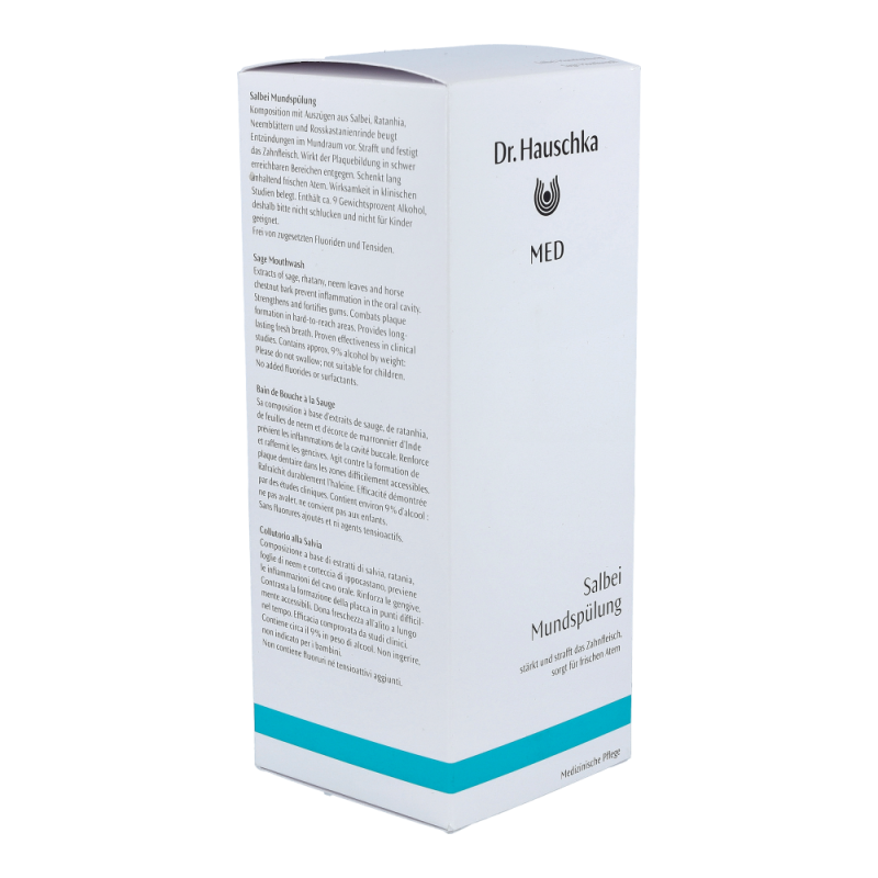 Dr. Hauschka Mundspülung Salbei beugt Entzündungen im Mundraum vor, stabilisiert die Mundflora und verleiht das sichere Gefühl eines frischen Atems.
