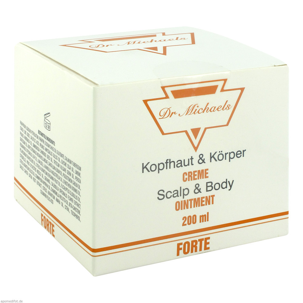 Dr. Michaels Kopfhaut- und Körper-Creme hemmt die Entzündung und Infiltration der Haut. Die Wirkung basiert auf speziell ausgewählten, natürlichen Materialien, einer speziellen Methoder der Extraktion und Beimischung von bestimmten Pflanzenextrakten und Ölen. Salizylsäure ist als weiterer Wirkstoff enthalten.
