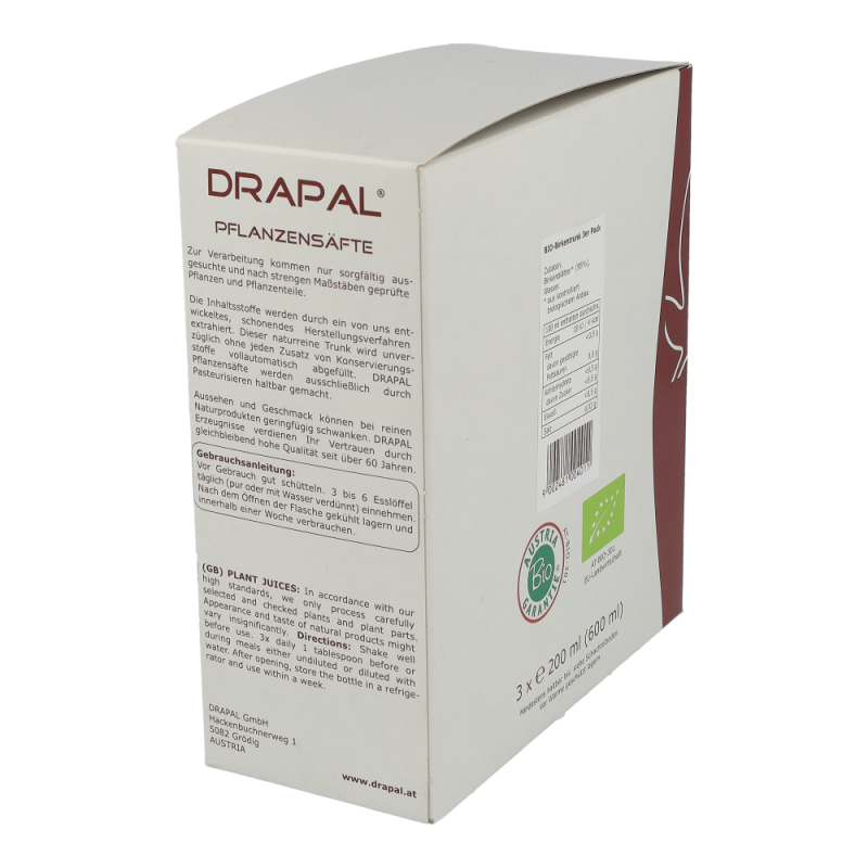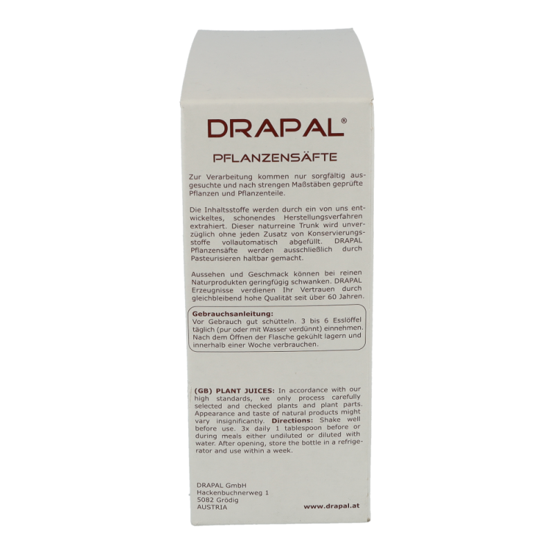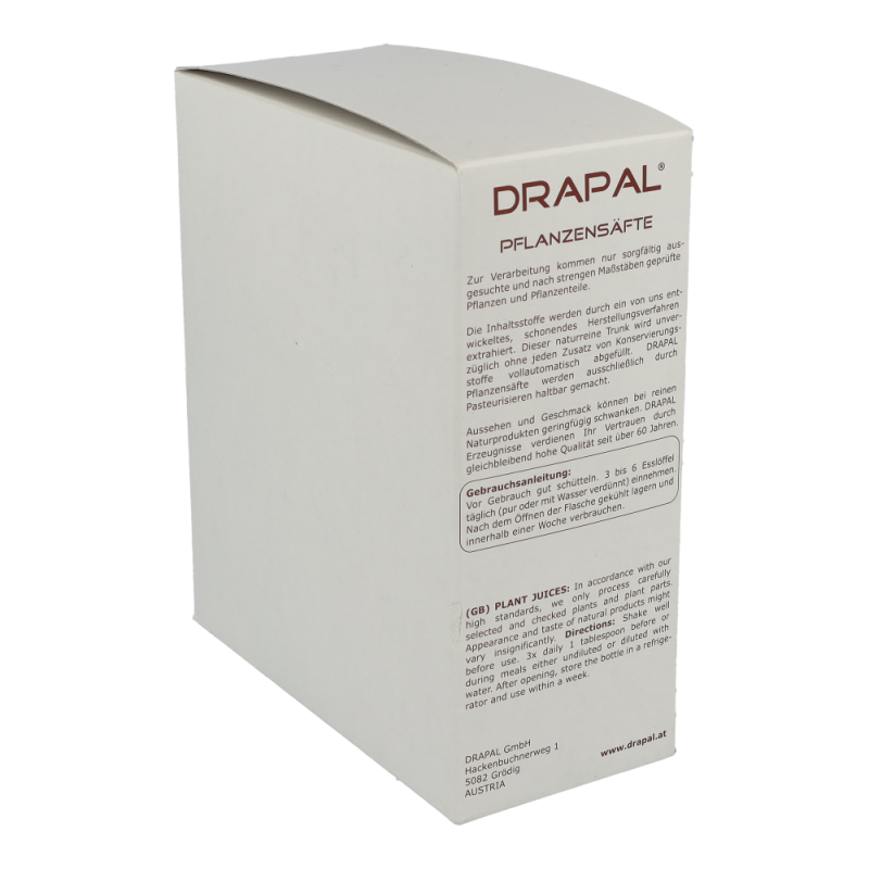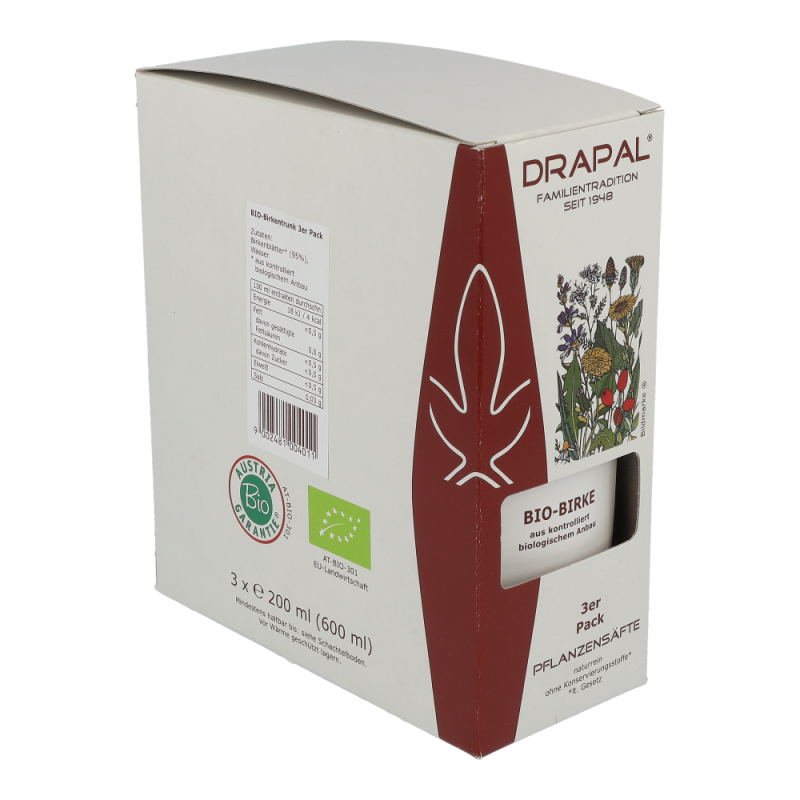Drapal Birken Saft ist zu 100% wirksam und das ganz ohne Chemie. Natürlich ist der Saft auch ohne Konservierungsstoffe, ohne Zuckerzusatz und ohne Alkohol. Reine Natur zum Trinken. Dieses Produkt können Sie in den Packungsgrößen 200 ml und 600 ml bestellen!