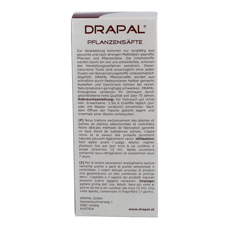 Drapal Rettich Saft Schwarz ist zu 100% wirksam und das ganz ohne Chemie. Natürlich ist der Saft auch ohne Konservierungsstoffe, ohne Zuckerzusatz und ohne Alkohol. Reine Natur zum Trinken.