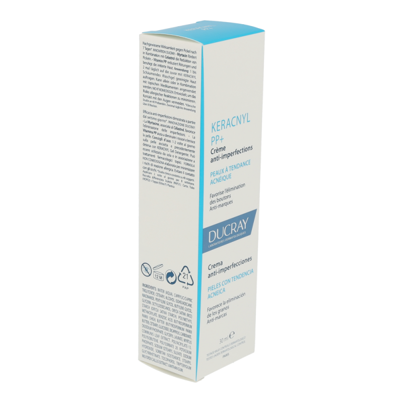 • KERACNYL PP+ Creme gegen Hautunreinheiten hilft, entzündete Pickel zu reduzieren und begrenzt das Auftreten von Pickelmale