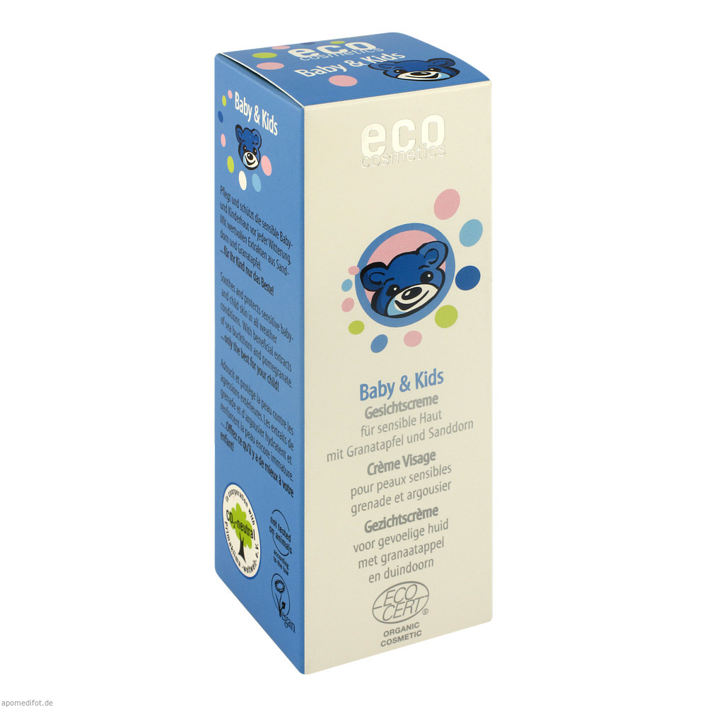 Die Eco Cosmetics Baby & Kids Gesichtscreme pflegt und schützt die sensible Baby- und Kinderhaut vor jeder Witterung. Besonders wenn es kalt und windig ist, braucht die Baby- und Kinderhaut besonders viel Schutz und Pflege. Die leichte Gesichtscreme schenkt dem Gesicht und den Händchen besonders viel Feuchtigkeit und beugt trockenen Hautstellen vor.