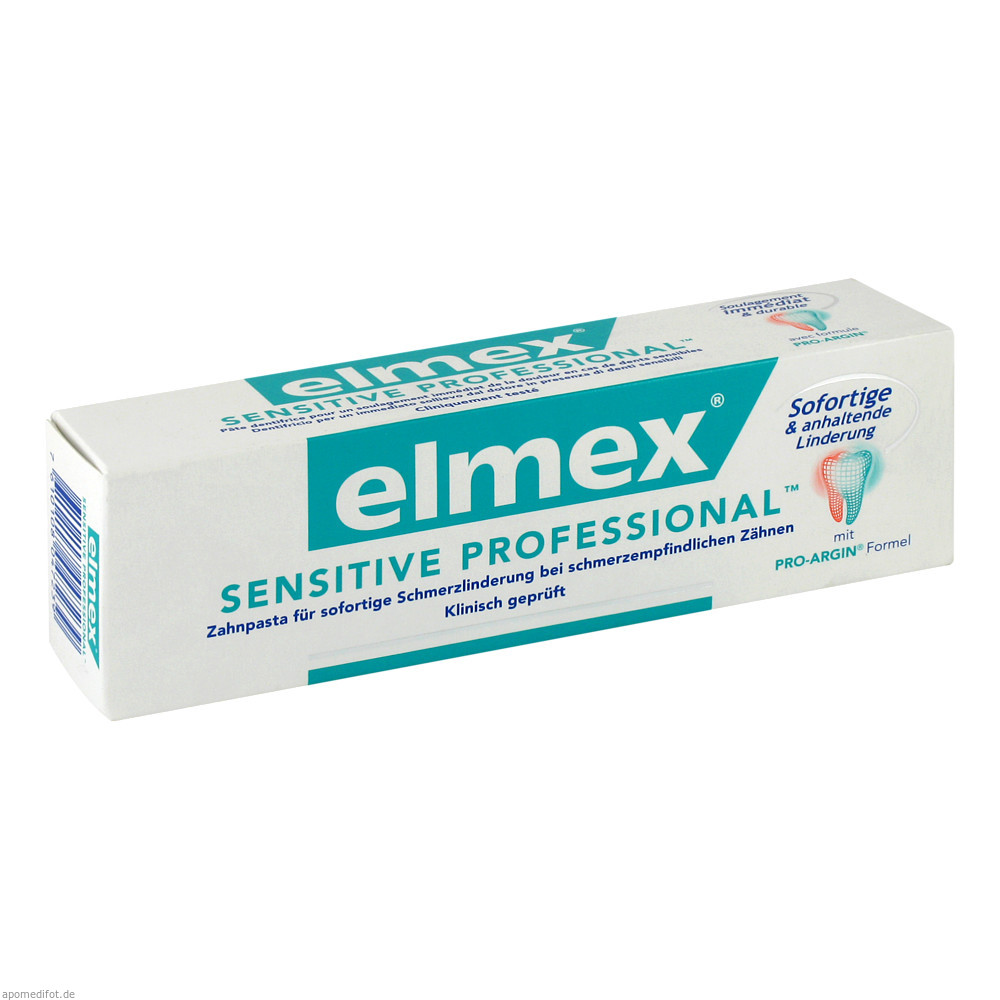 Elmex Sensitive Zahnpasta wurde speziell für Personen mit freiliegenden, schmerzempfindlichen Zahnhälsen entwickelt. Sie verringert die Schmerzempfindlichkeit der Zähne, die Gefahr von Zahnhalskaries und das Abrasionsrisiko..