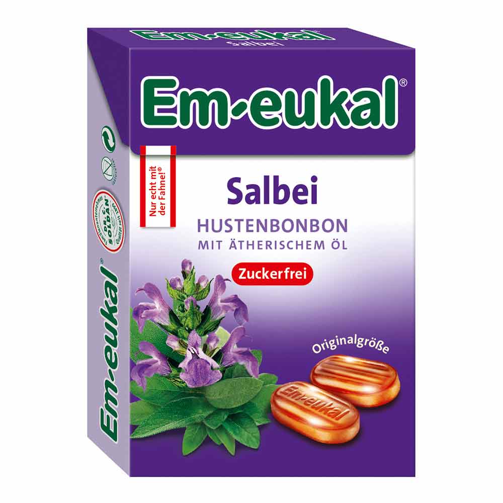 Die Em Eukal Salbei Bonbons sind Premiumbonbons mit wertvollem Salbeiextrakt aus kontrolliertem Anbau und hochwertigen ätherischen Ölen. Sie sind samtig weich im Geschmack und ein natürlicher Balsam für Hals und Stimme.