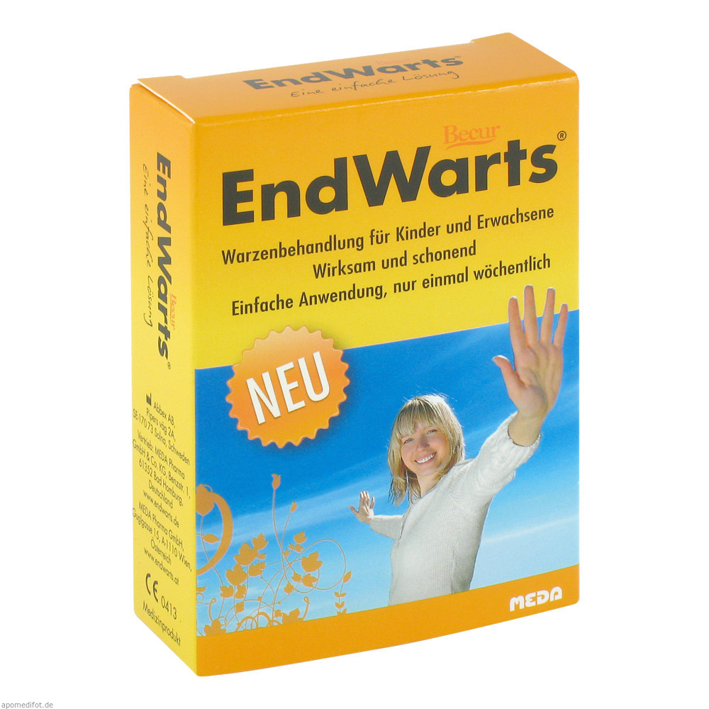 EndWarts ist eine örtlich anzuwendende Lösung für Warzen auf Händen, Füßen und dem Körper. Die Lösung enthält Ameisensäure, welche die Warze von innen heraus austrocknet.