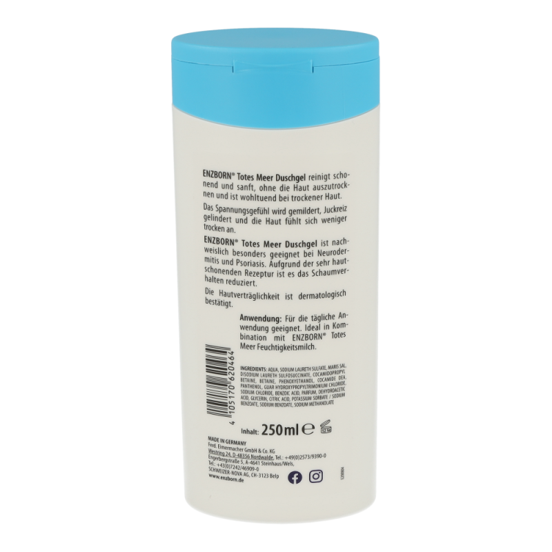 Enzborn Totes Meer Duschgel Mild reinigt porentief, beugt Hautunreinheiten vor und pflegt intensiv. Es ist wohltuend bei Hautirritationen