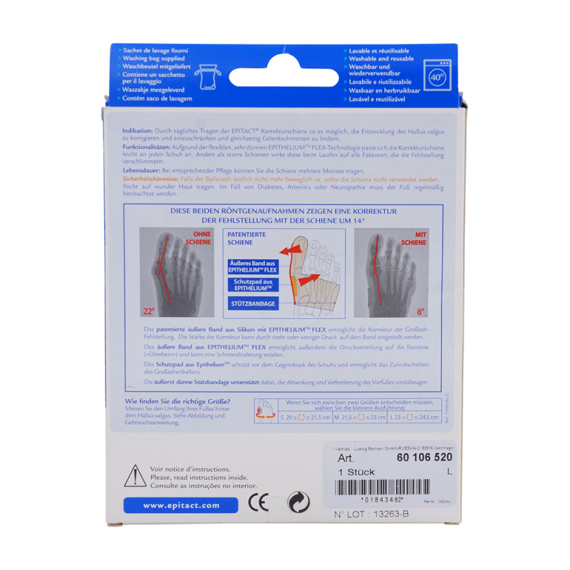 epitact® Hallux Korrekturschiene verzögert, korrigiert und beschränkt die Verformung des hallux valgus und erleichtert die Gelenkschmerzen.