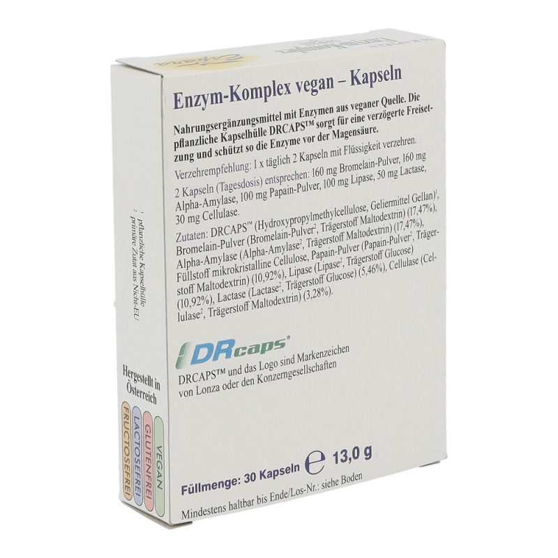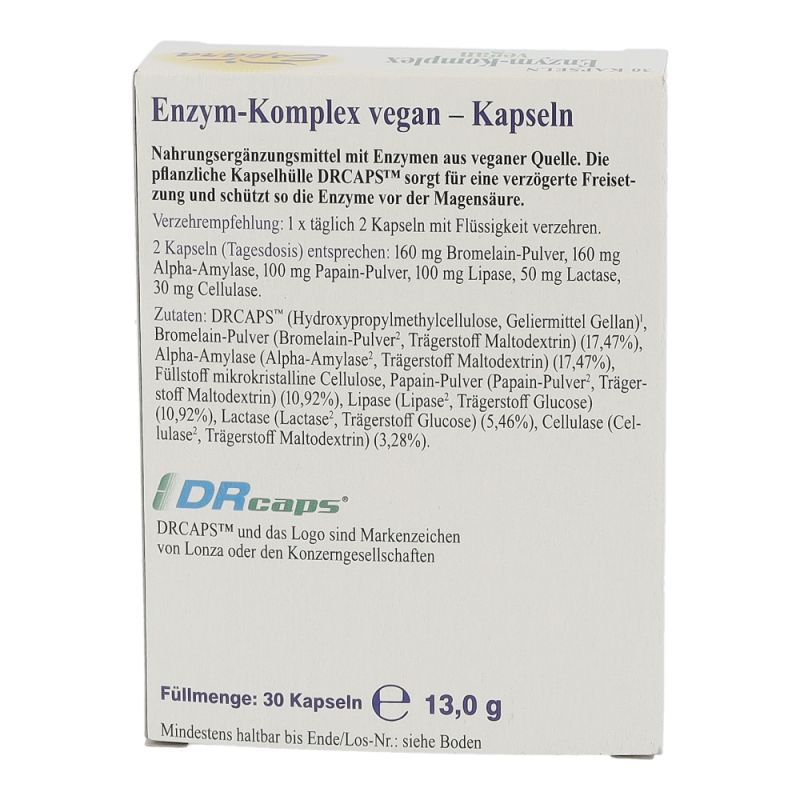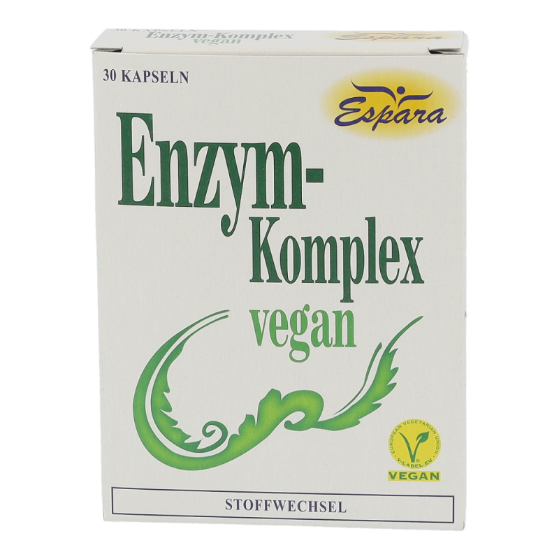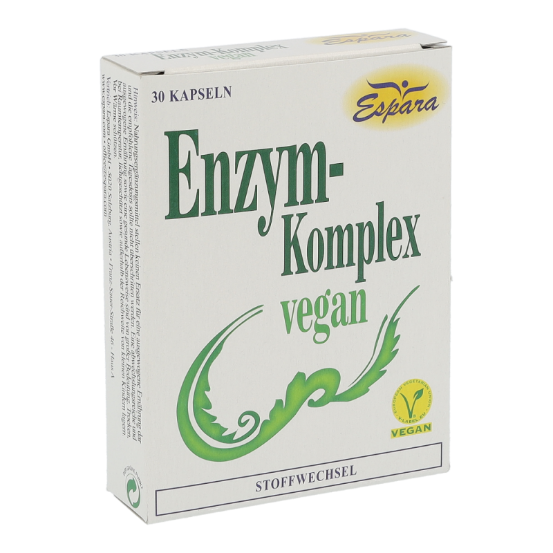 Espara Enzym-Komplex Vegan Kapseln ist ein Nahrungsergänzungsmittel mir diversen Enzymen und ausschließlich veganen Inhaltsstoffen.