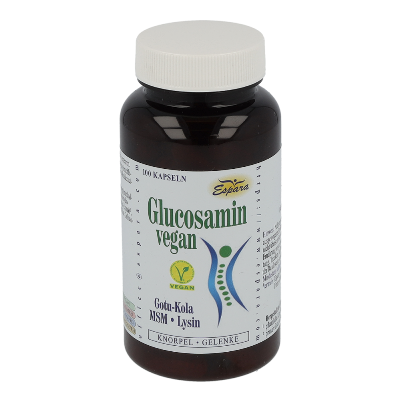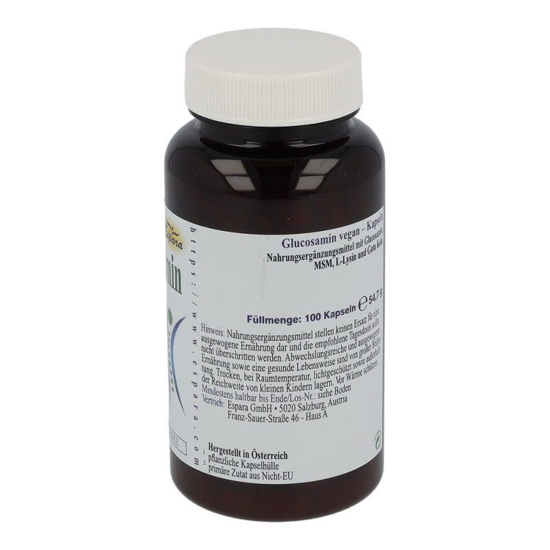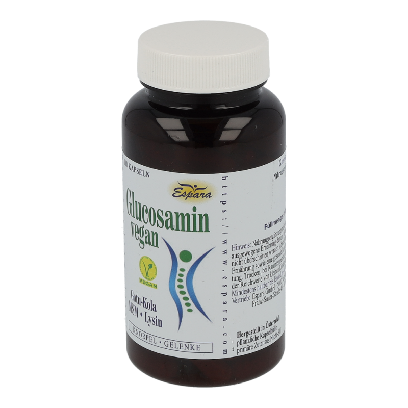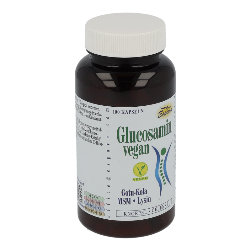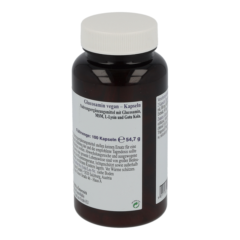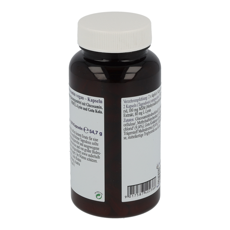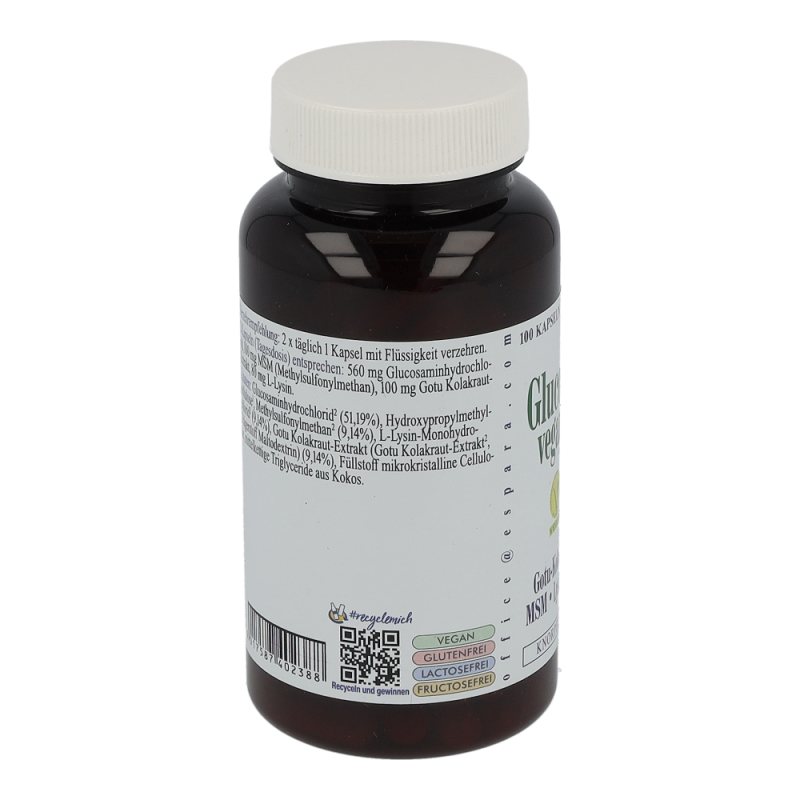 Nahrungsergänzungsmittel mit Glucosamin, MSM, Gotu Kola und L-Lysin.
