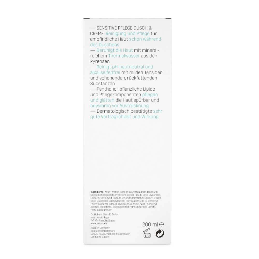 Eubos Sensitive Dusch > Creme versorgt die Haut schon beim Duschen mit pflegenden Substanzen. Glättet fühlbar und macht die Haut samtig weich. Für normale bis trockene Haut.