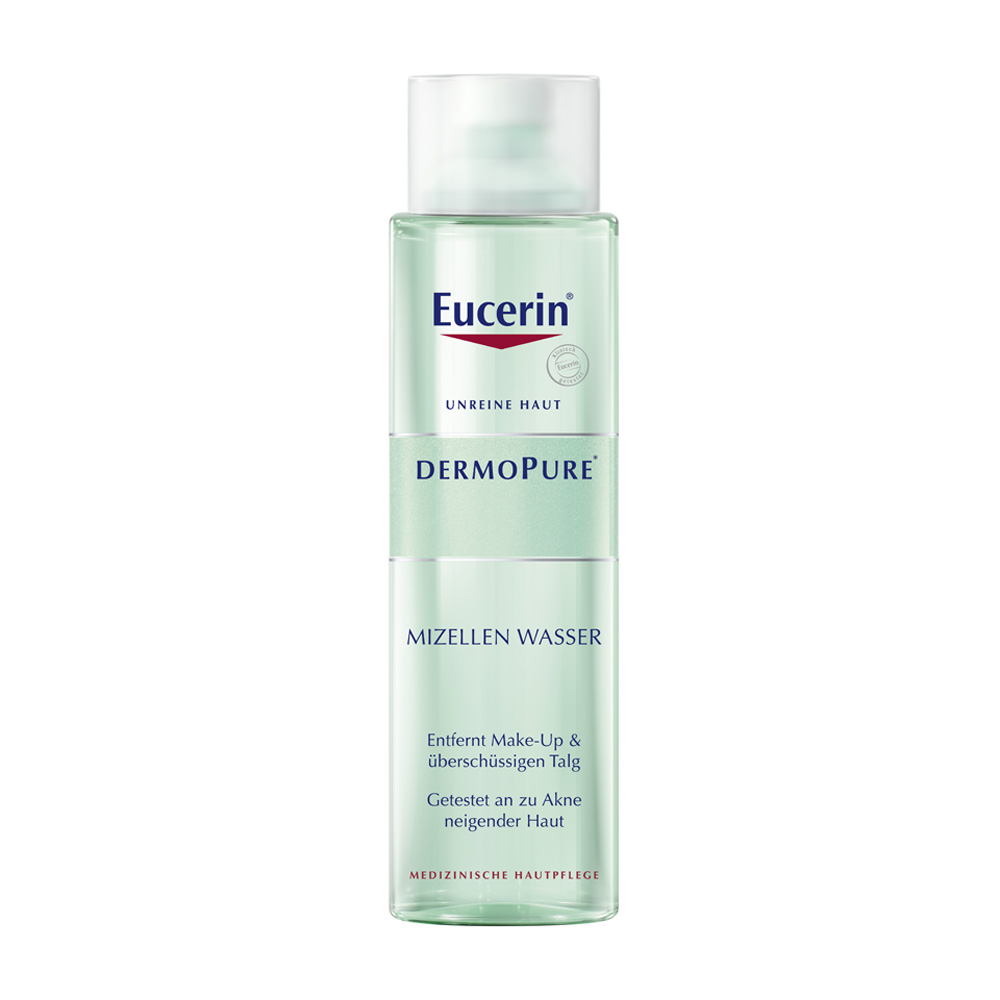 Das Eucerin Dermopure Mizellen-Wasser ist eine erfrischende Reinigung für unreine, zu Akne neigende Haut. Wasserlösliches Make-up im Gesicht und an den Augen wird restlos entfernt. Die Haut wird gründlich gereinigt, geklärt sowie erfrischt und auf die anschliessende Pflege vorbereitet. Beugt der Entstehung von Unreinheiten vor.