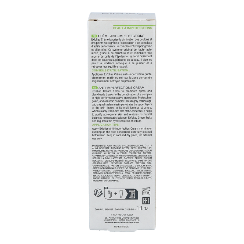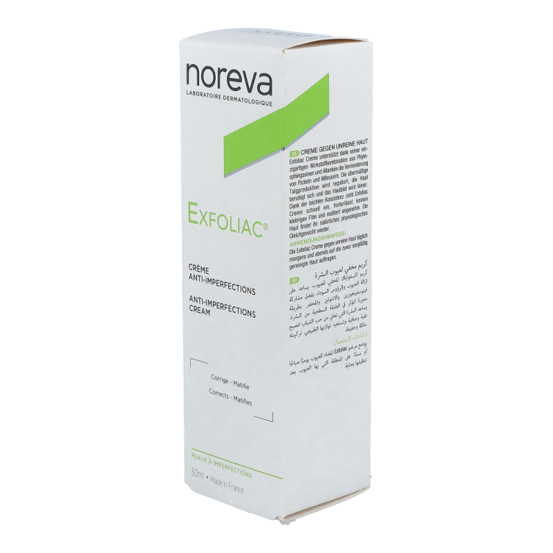 Noreva Exfoliac Anti-Imperfections hemmt die bakterielle Vermehrung auf der Haut, verbessert die Barrierefunktion und reguliert die Talgsekretion.