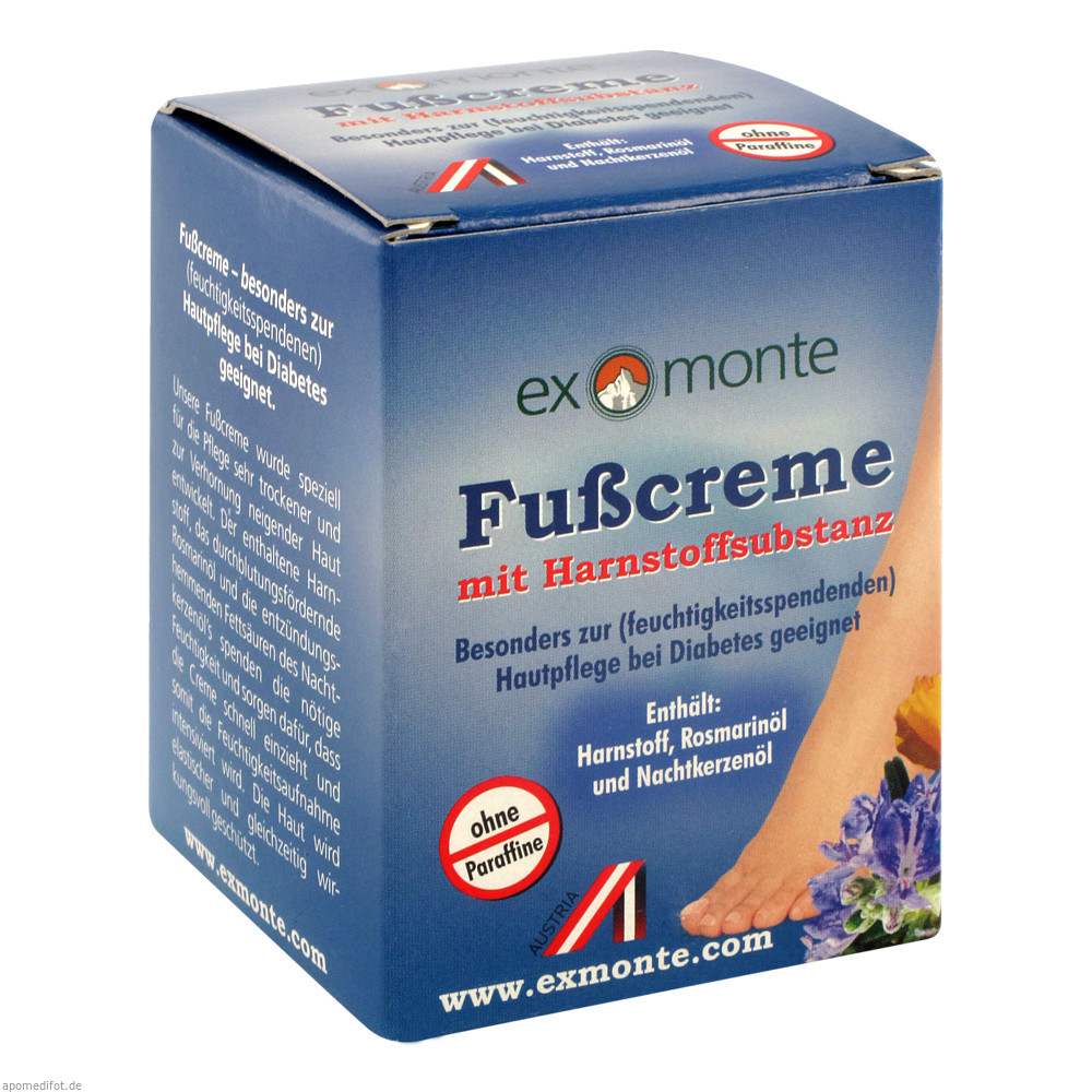 Exmonte Fuß Creme ohne Paraffine wurde speziell für die Pflege sehr trockener und zur Verhornung neigender Haut entwickelt. Die enthaltenen Inhaltsstoffe spenden die nötige Feuchtigkeit und sorgen dafür, dass die Creme schnell einzieht und somit die Feuchtigkeitsaufnahme intensiviert wird. Die Haut wird elastischer und gleichzeitig wirkungsvoll geschützt.