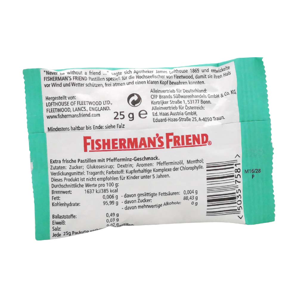 Fisherman‘s Friend Original wird nach wie vor aus dem Originalrezept von 1865 hergestellt. Der extra starke und einzigartige Geschmack erfrischt und hilft bei Husten und Heiserkeit wie keine andere Pastille.