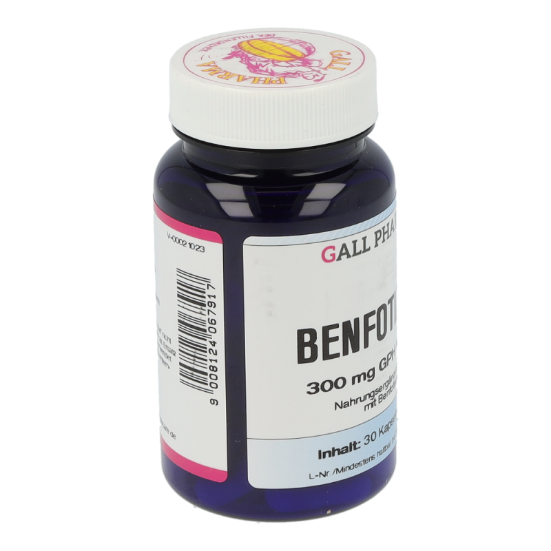 Benfotiamin ist die fettlösliche Vorstufe des Thiamins (= Vitamin B1). Das fettlösliche Benfotiamin zeichnet sich durch eine deutlich bessere Bioverfügbarkeit gegenüber dem wasserlöslichen Thiamin aus. Im Organismus wird das Benfotiamin rasch zum Vitamin B1 umgewandelt. Durch die effektivere Aufnahme kann ein Vitamin B1 Mangel durch Benfotiamin rascher ausgeglichen werden als durch die wasserlösliche Variante. Bei einem gestörten Zuckerstoffwechsel ist es sinnvoll den Thiamin-Spiegel im Blut überprüfen zu lassen. Benfotiamin ist eine Verbindung aus der Familie der Allithiamine, die in Gemüsesorten wie Knoblauch, Zwiebel, Porree und Schalotten enthalten sind.