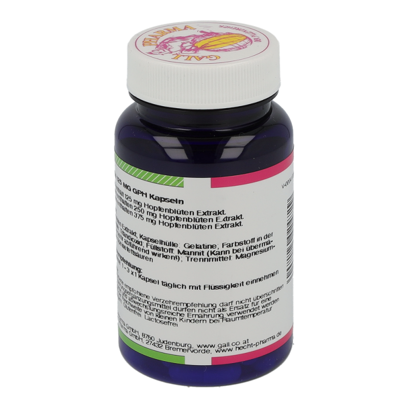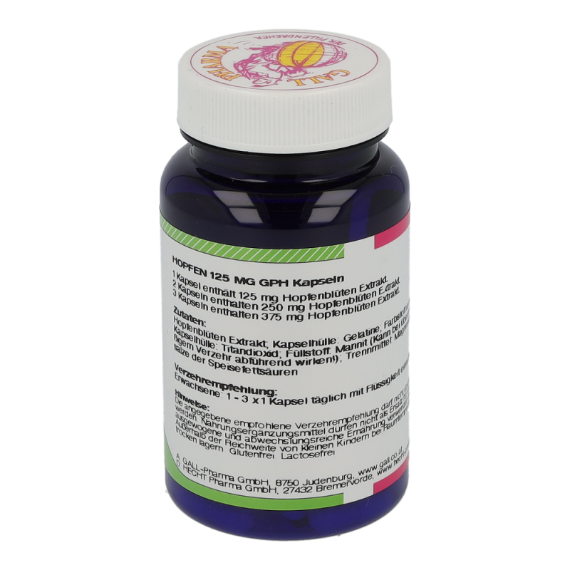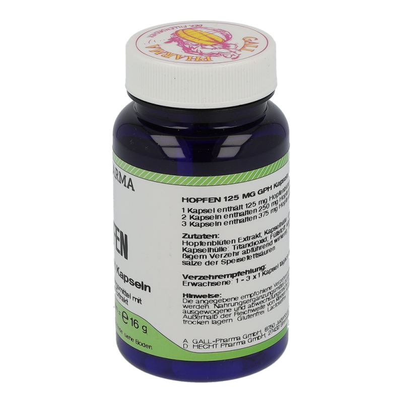 Gall Pharma Hopfen 125 mg Kapseln 60 Stk. enthalten 125 mg natürliches Hopfenblüten Extrakt in einer Hartgelatinekapsel und können durch die beruhigende Eigenschaft des Hopfens sowohl bei Schlaf- und Einschlafstörungen Abhilfe schaffen, als auch allgemeine Erregungszustände lindern und somit zu einer Verbesserung des Befindens beitragen. Der physiologische Schlafrhythmus bleibt durch die rein pflanzlichen Extrakte unbeeinflusst und bietet eine optimale, natürliche Alternative zu anderen schlaffördernden Mitteln – profitieren Sie von hohen Rabatten und dem großen Sortiment einer Standortapotheke!
