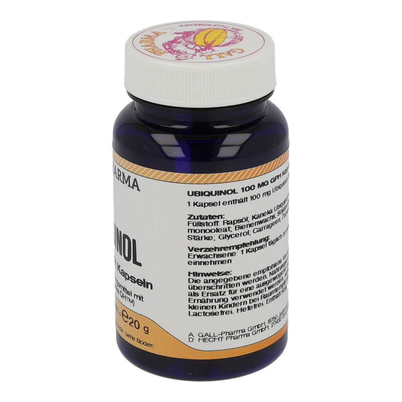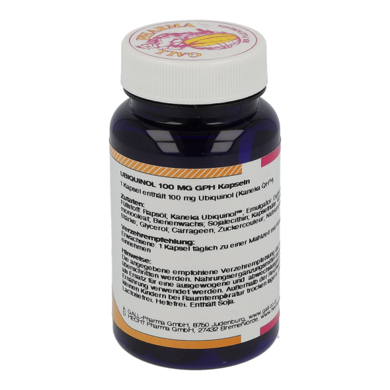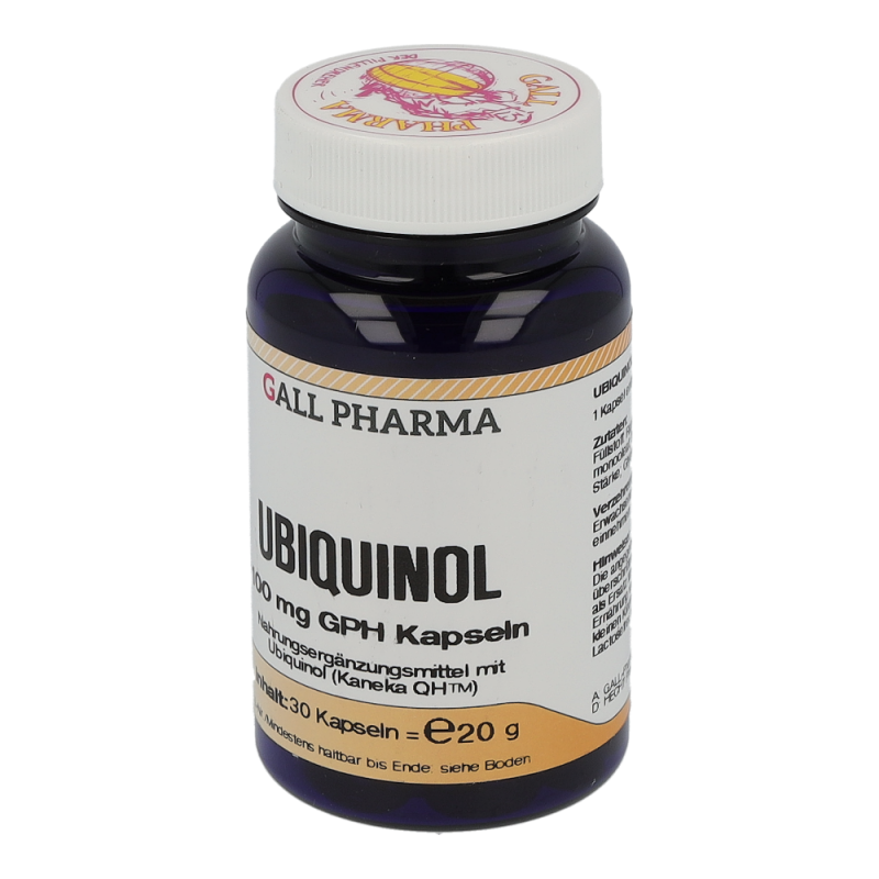 Coenzym Q-10 existiert in zwei biochemischen Formen, als Ubiquinon und als Ubiquinol. Ubiquinol ist die reduzierte und damit die aktive Form des Coenzyms Q-10. Es kommt in geringer Menge in der Nahrung vor, hauptsächlich wird es aber vom Körper selbst hergestellt. Coenzym Q-10 wird für die Energiegewinnung in den Mitochondrien benötigt und ist in seiner reduzierten Form als Ubiquinol ein zentraler Faktor für antioxidativen Zellschutz. Ubiquinol ist ein hochwirksames, fettlösliches Antioxidans, das u. a. in der Lage ist, Vitamin E und Vitamin C zu regenerieren. Seine Bedeutung wird durch die Tatsache unterstrichen, dass es das einzige fettlösliche Antioxidans ist, das im Körper synthetisiert wird.Coenzym Q-10 kann seine gesundheitsfördernde Wirkung nur entfalten, wenn es in den Blutkreislauf aufgenommen und in Ubiquinol umgewandelt wird. Das erfordert unter anderem eine uneingeschränkte Enzymaktivität. Ab dem 40. Lebensjahr nimmt die Fähigkeit des Körpers Ubiquinon aufzunehmen und es in die aktive Form umzuwandeln stetig ab.Erhöhte Cholesterinwerte erfordern oft die Einnahme von speziellen Medikamenten (Statine), die zwar einerseits den Cholesterinspiegel senken, aber auch andererseits Coenzym Q-10 Räuber sind.Ubiquinol 100 mg GPH Kapseln enthalten 100 mg Ubiquinol in einer Weichgelatinekapsel. Oral eingenommen zeigt Ubiquinol eine deutlich höhere Bioverfügbarkeit als Ubiquinon, sodass es bereits in niedriger Dosierung biologisch aktiv werden kann.Es konnte in Studien gezeigt werden, dass durch Ubiquinol der natürliche Alterungsprozess des Organismus verlangsamt und die Leistungsfähigkeit durch optimierte Energiegewinnung erhöht werden kann. Es unterstützt die Herzleistung, ist wichtig für ein gesundes Blutdruckgeschehen und fördert die körpereigenen Maßnahmen gegen vorzeitige Alterungsprozesse. Besonders empfehlenswert ist die Einnahme von Ubiquinol für Sportler, chronisch Kranke und Menschen ab dem 40. Lebensjahr..