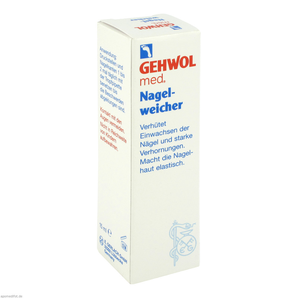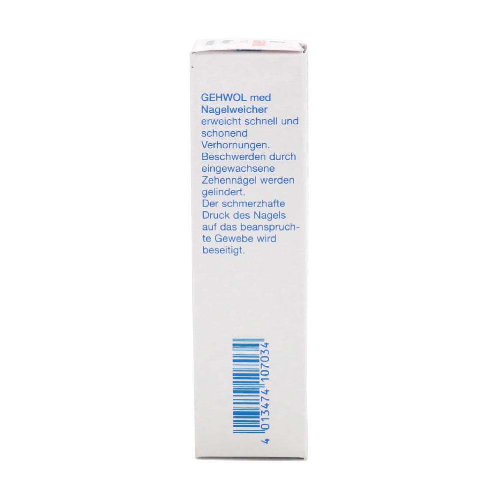 Gehwol med Nagelweicher erweicht schnell und schonend Verhornungen. Beschwerden durch eingewachsene Zehennägel werden gelindert. Der schmerzhafte Druck des Nagels auf das beanspruchte Gewebe wird beseitigt..