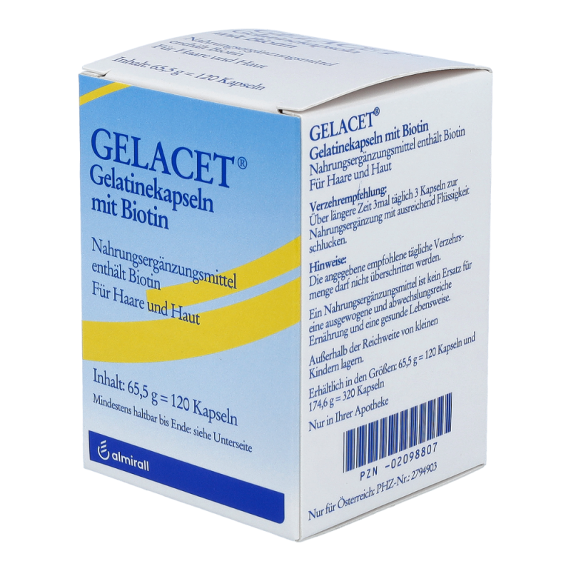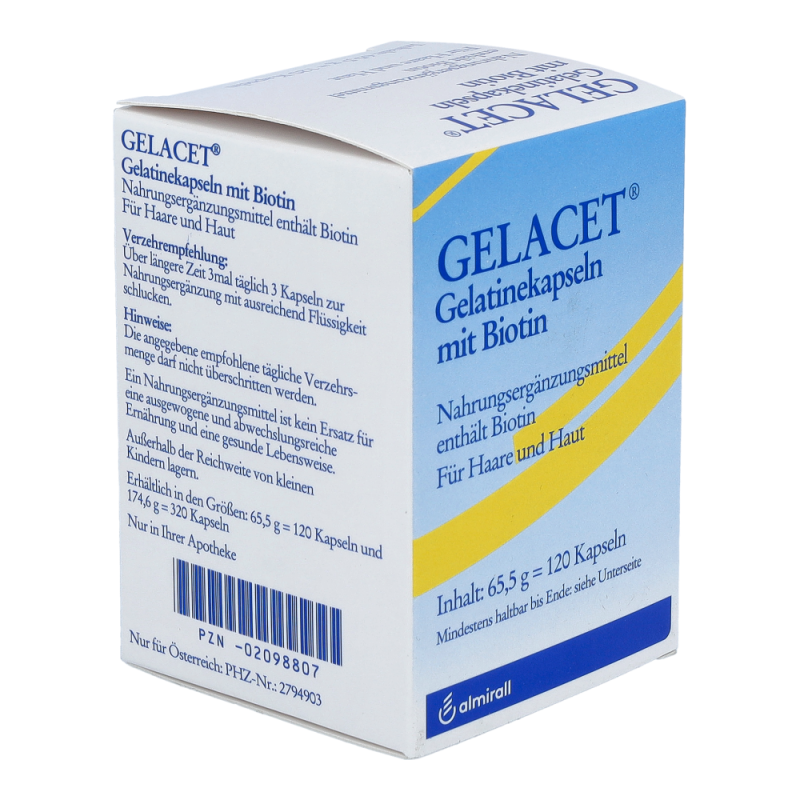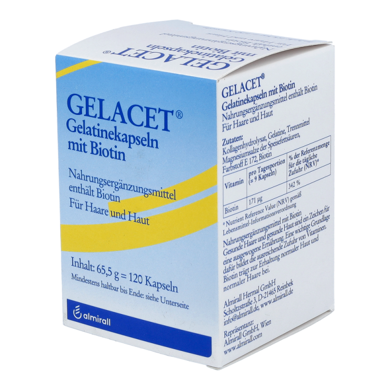 Gelacet Gelatine + Biotin Kapseln sind eine Nahrungsergänzung, die speziell auf die Ernährung von Haaren und Nägeln ausgerichtet ist. Die Kapseln können dazu beitragen, den Haar- und Nagelzustand günstig zu beeinflussen.