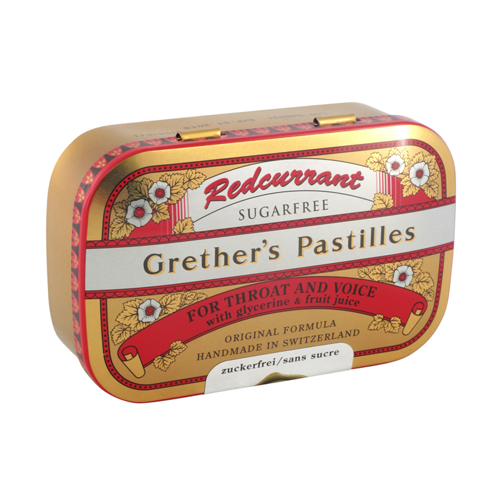 Grethers Pastillen Redcurrant zuckerfrei in der 110 g Dose mit der frisch-exotischen Komposition aus naturreinen Saft der Roten Johannisbeere, Vitamin C und Passionsfrucht schmecken verführerisch köstlich. Genießen Sie Grether’s Pastilles Redcurrant regelmäßig bei beanspruchter Stimme und bei beginnenden Beschwerden in Hals und Rachen.