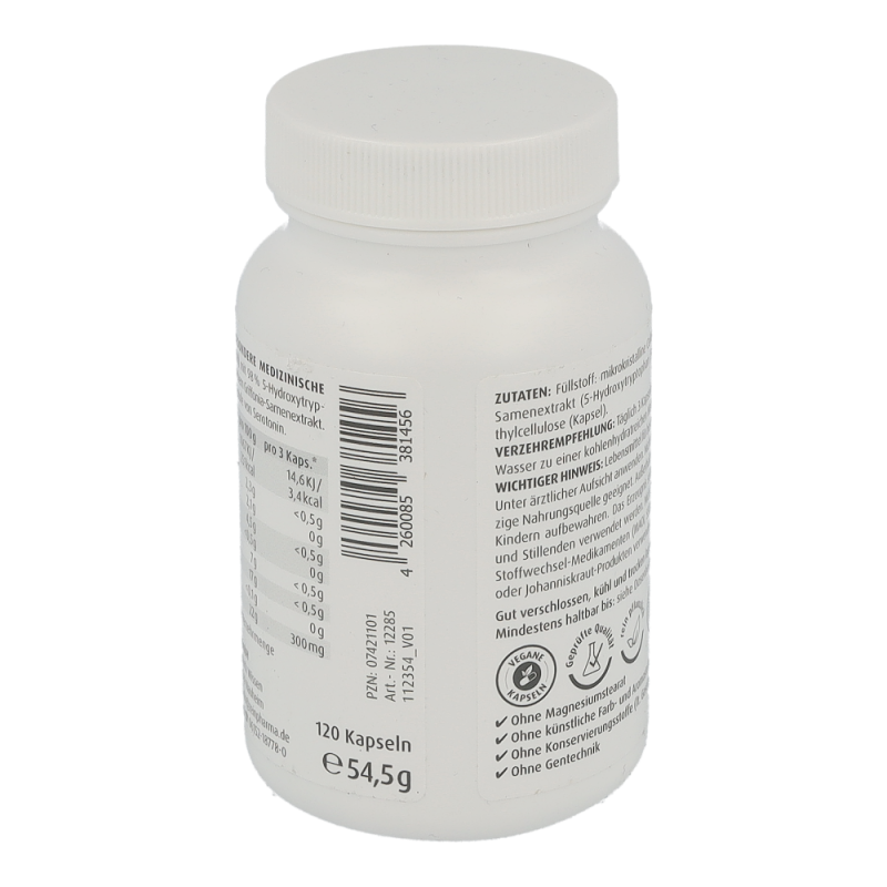 Griffonia 5-htp 100 mg Kapseln von Shanab Pharma enthält 5-Hydroxytryptophan, eine nicht-proteinogene α-Aminosäure. Diese ist natürlich Bestandteil von Lebensmitteln wie Bananen. Einen besonders hohen Gehalt an 5-HTP weisen die Samen der Afrikanischen Schwarzbohne (Griffonia simplicifolia) auf. Auch wir bietet in unserem Produkt „Griffonia 5-HTP Kapseln“ Samenextrakt aus der afrikanischen Schwarzbohne an.