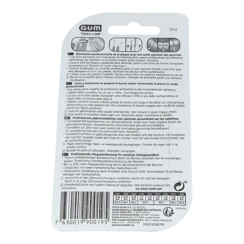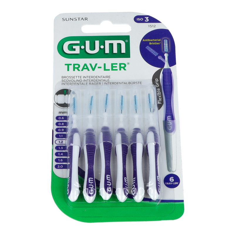 GUM® TRAV-LER® Inderdentalbürsten (0.6 mm Drahtdurchmesser / 1.2 mm Zahnzwischenraum / ISO-Norm 3) Kerzenform in violett mit flexiblem, ergonomischem Griff zur besseren Handhabung an schwer erreichbaren Stellen. Der Bürstenhals aus Kunststoff kann bis zu 90 Grad gebogen werden. Bis zu 25 % bessere Plaqueentfernung dank innovativer Dreiecks-Borstenstruktur. CHX-Beschichtung der Borsten hält die Interdentalbürste hygienisch (bis zu 2 Wochen). Einfache Handhabung für hohe Patienten-Compliance.