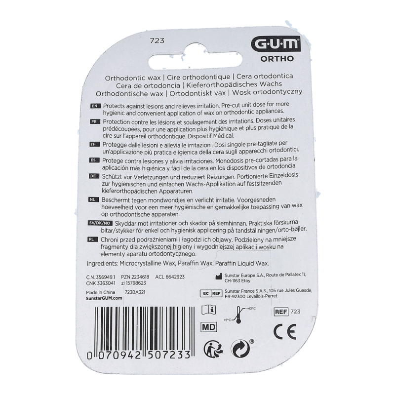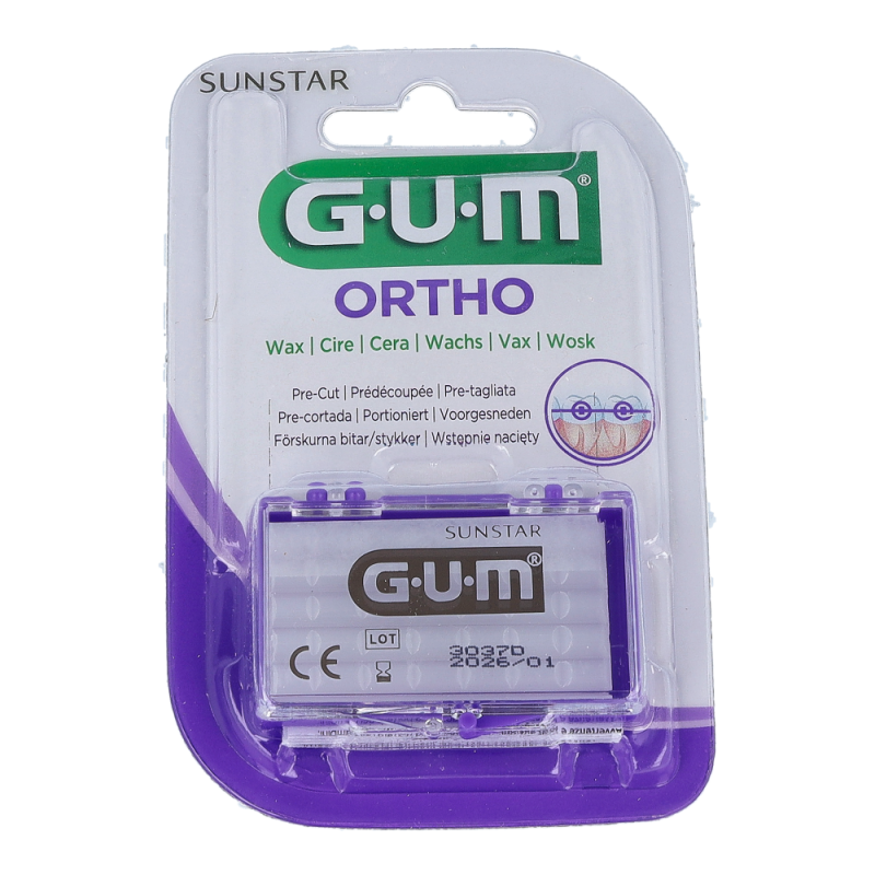 Gum Zahnpflege Orthodont Wachs haftet auf kieferorthopädischen Apparaturen und schützt die Mundschleimhaut vor Verletzungen. Das durchsichtige Wachs haftet gut und ist von außen nicht sichtbar.
