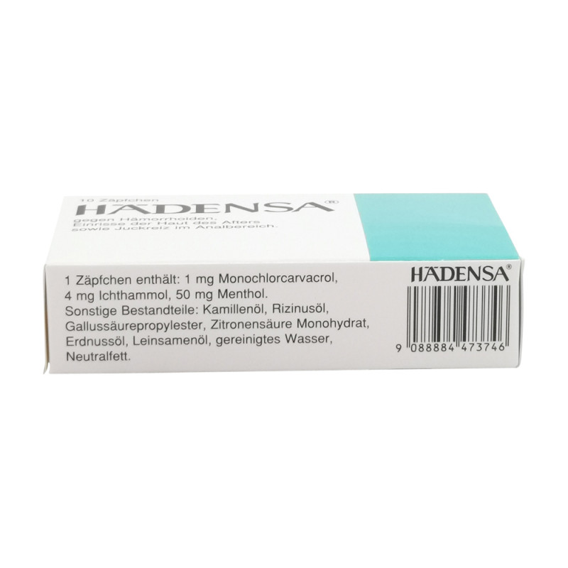 Hädensa Zäpfchen sind Hämorrhoidalzäpfchen und werden bei inneren und äußeren Hämorrhoiden, Einrissen der Haut sowie Juckreiz im Analbereich angewendet. Sie wirken entzündungshemmend, kühlend, schmerzstillend und antiseptisch.