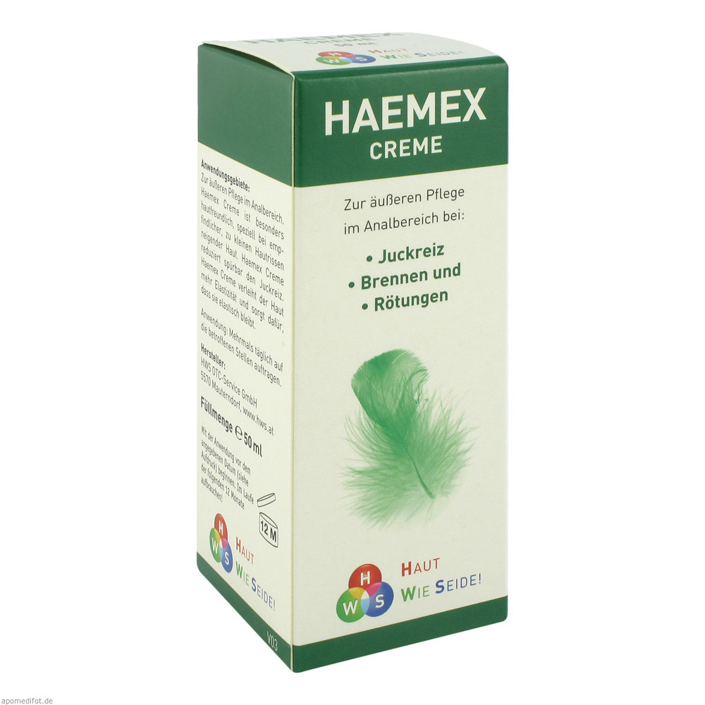 Haemex Creme ist eine homöopathische Creme zur Linderung der Beschwerden bei Hämorrhoiden. Schmerzen werden gelindert und Juckreiz und Brennen minimiert. Die Haut wird elastischer und regeneriert sich schnell..