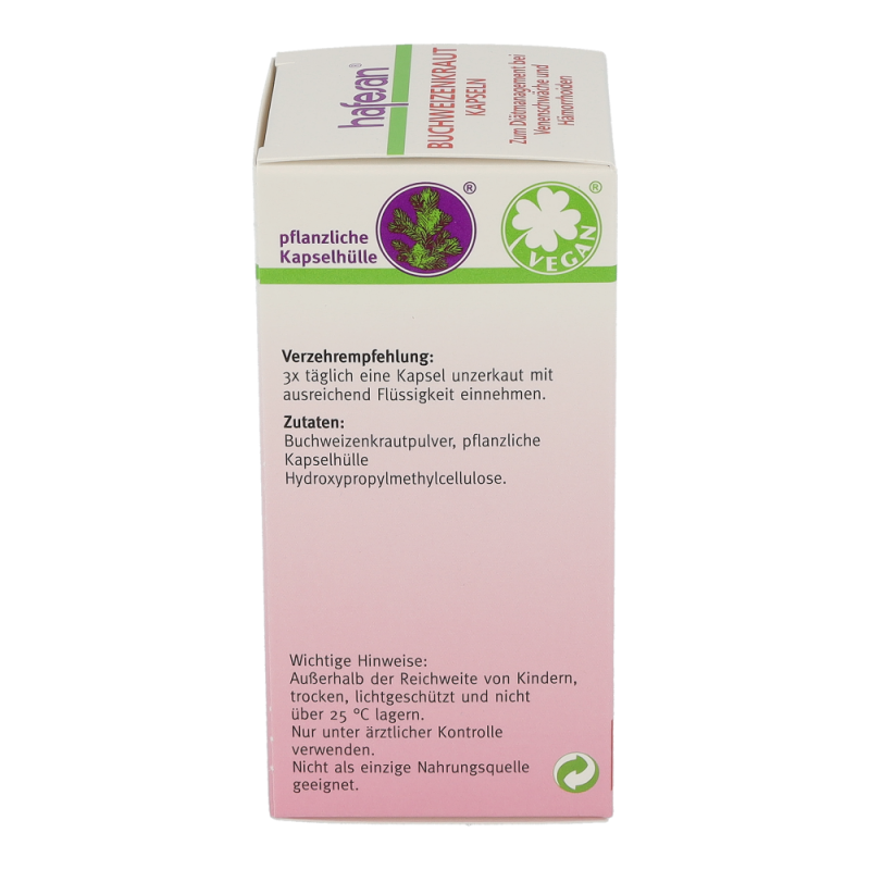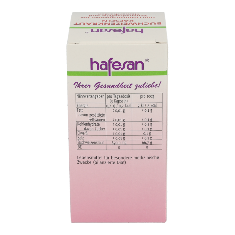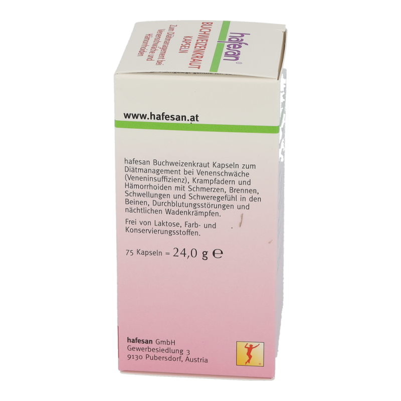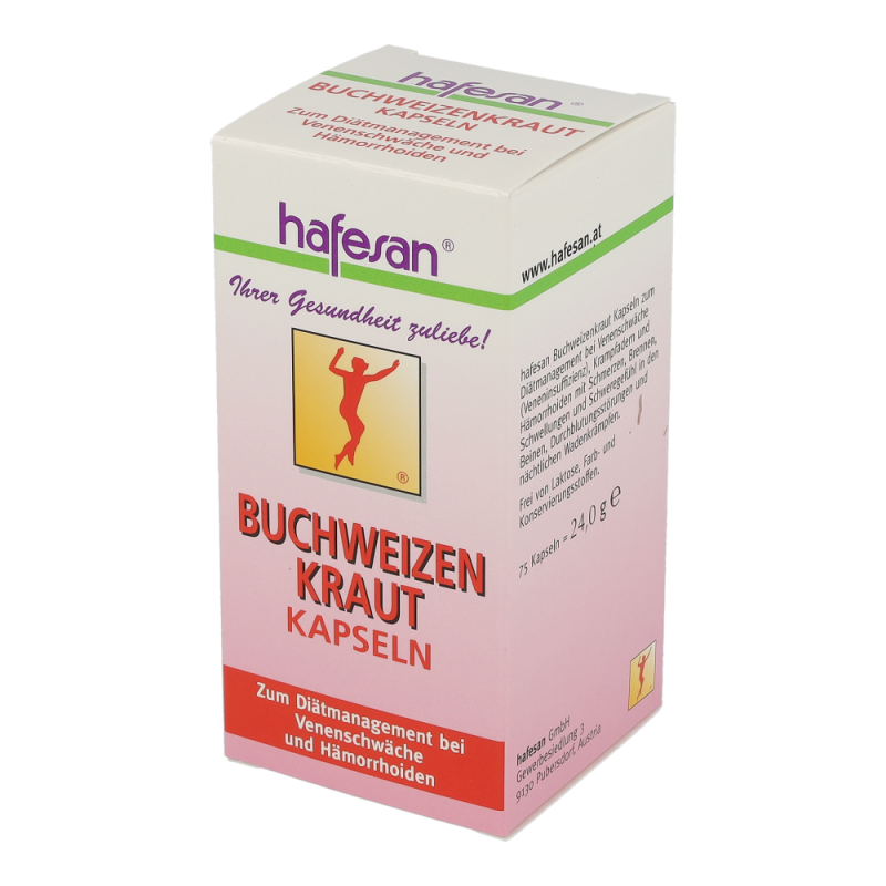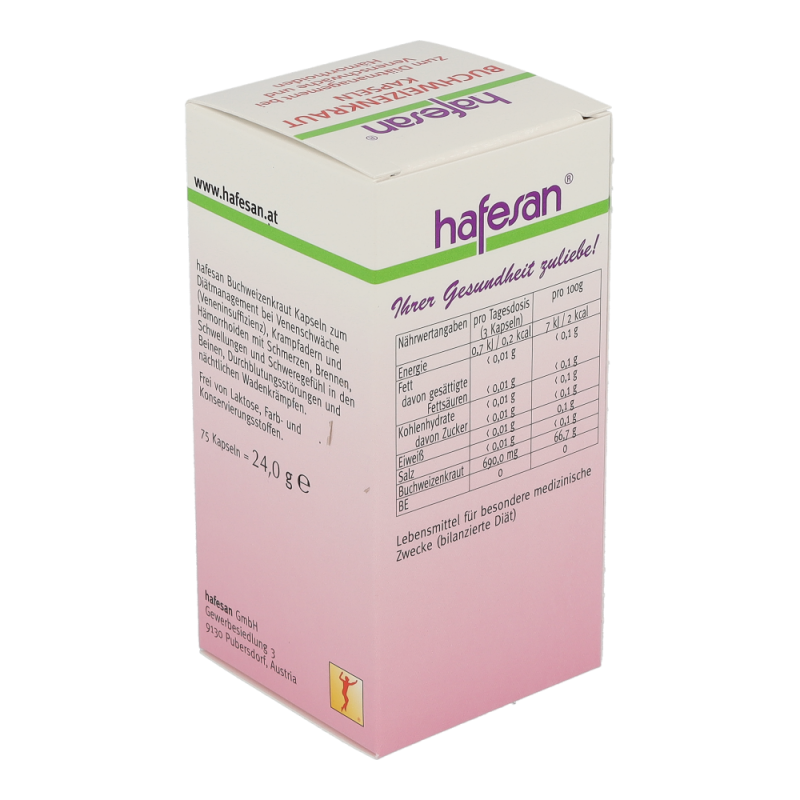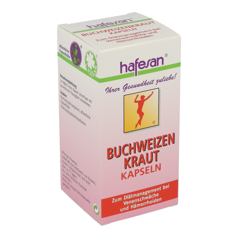 hafesan Buchweizenkraut Kapseln zur diätischen Behandlung von Venenproblemen und Hämorrhoiden.