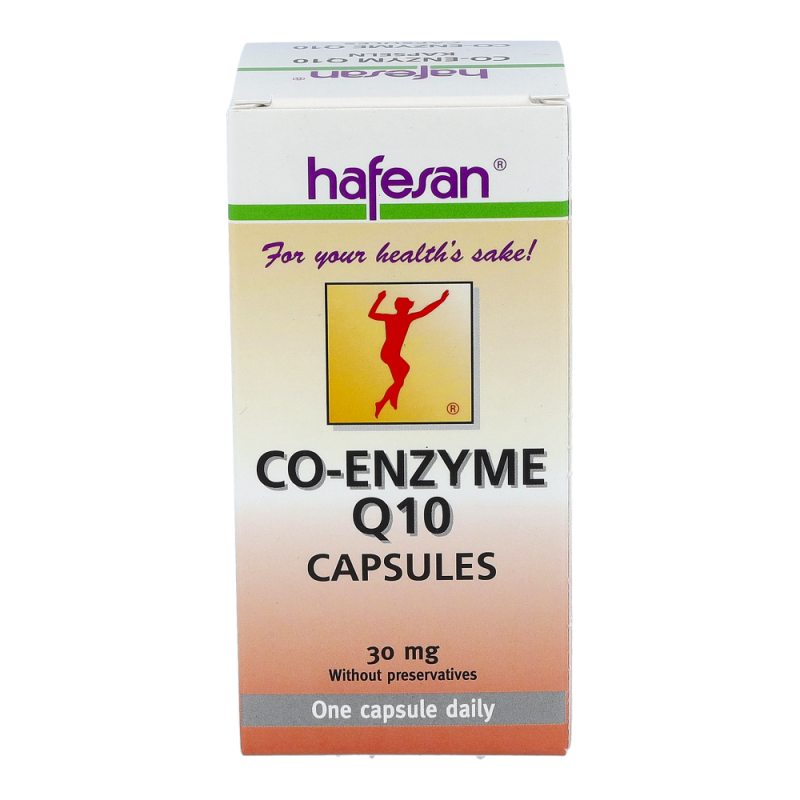 Hafesan® Co-Enzym Q10 30 mg Kapseln enthalten Co-Enzym Q10 welches unentbehrlich für gesunde innere Organe, vor allem für das Herz, ist. Empfohlen ab Mitte 30 sowie in Zeiten erhöhter körperlicher oder geistiger Anstrengung.