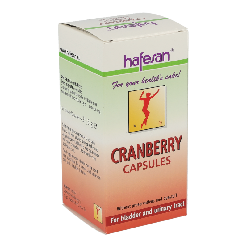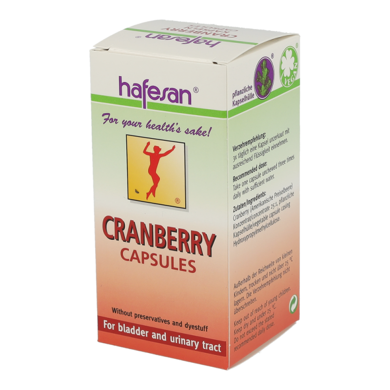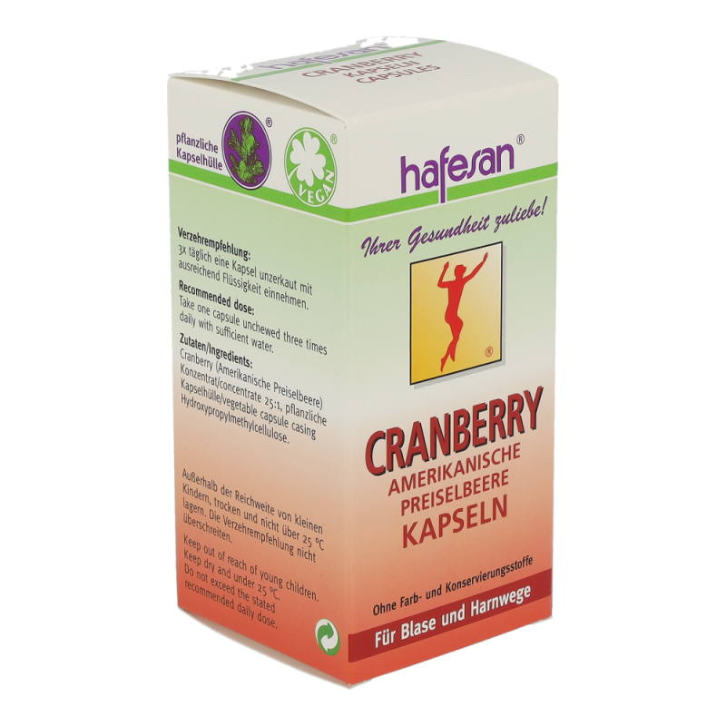 Hafesan® Cranberry Kapseln bei Problemen mit der Blase und der Harnwege. Die köroereigenen Abwehrkräfte werden gestärkt und gefährliche Bakterien werden unschädlich gemacht.