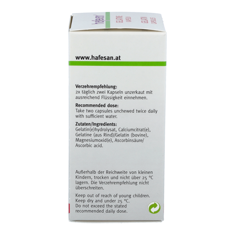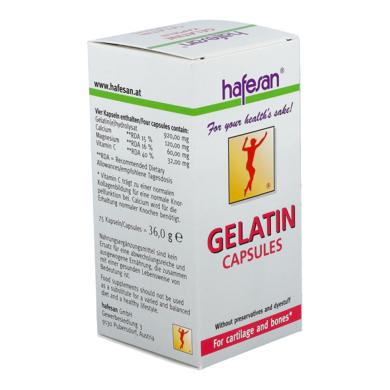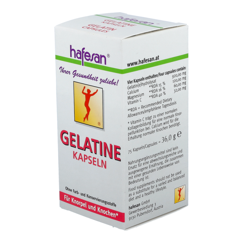 hafesan Gelatine Kapseln wirken sich positiv auf die Beweglichkeit und die Elastizität aus und können eine deutliche Erleichterung bei Problemen mit Bandscheiben, Gelenksknorpel, Bindegewebe und Knochen schaffen..
