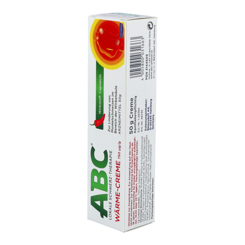 Die ABC Wärme-Creme erwärmt die Haut, fördert die Durchblutung und entspannt gleichzeitig die Muskeln. Sie ist geruchsneutral und zieht schnell in die Haut ein.