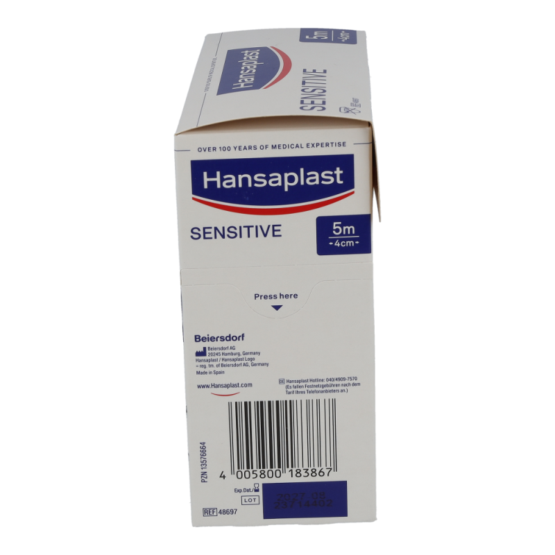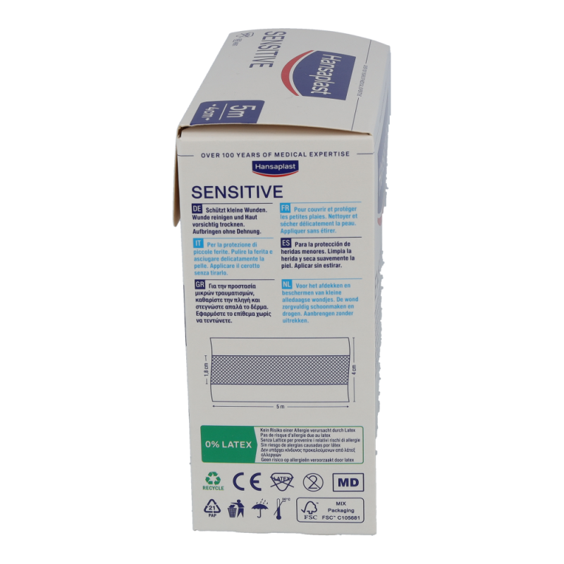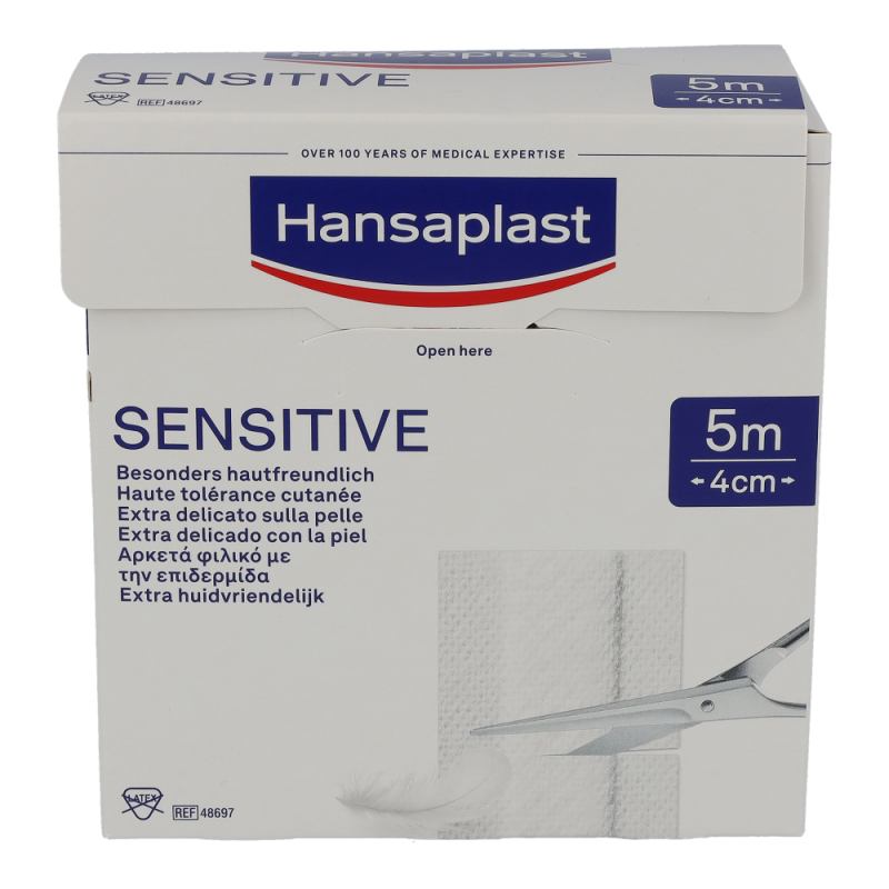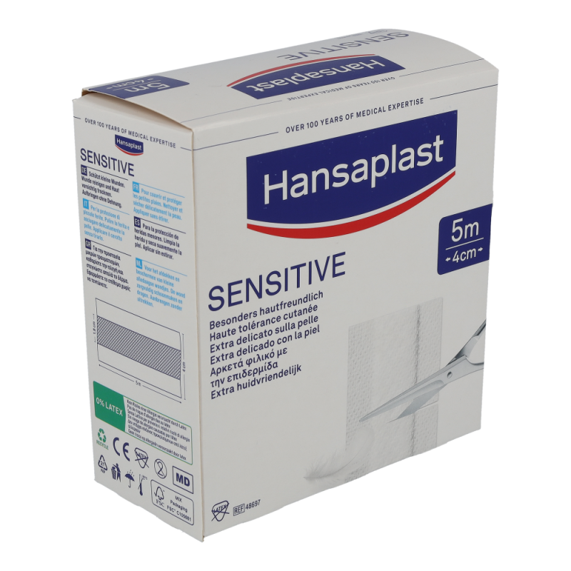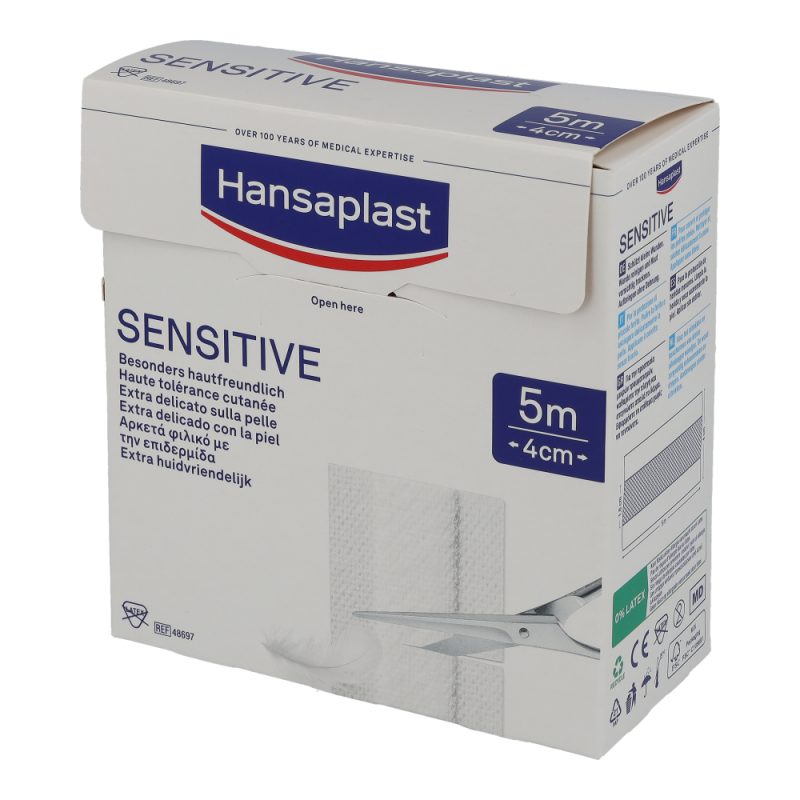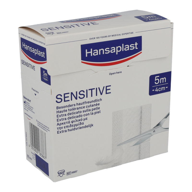 Hansaplast Sensitive Pflaster sind für empfindliche Haut und eignen sich für alle Arten von kleineren Wunden und Verletzungen. Das besonders hautfreundliche Material ist hypoallergen und flexibel. Hansaplast Sensitive Pflaster sind auch für Diabetiker geeignet, die Hautverträglichkeit ist dermatologisch bestätigt. Die nicht verklebende Wundauflage schützt und polstert die Wunde. Dank der zuverlässigen Klebkraft bieten die Pflaster sicheren Halt und verrutschen nicht. Hansaplast Sensitive Meterware und Hansaplast Sensitive Injektionspflaster sind latexfrei.